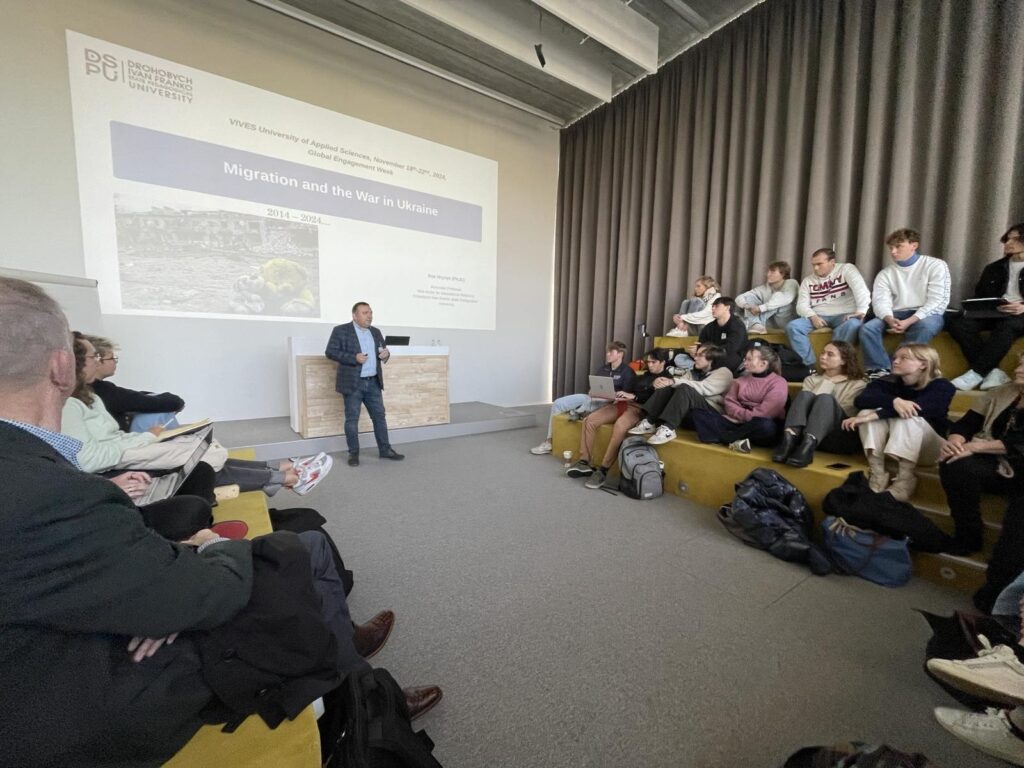Протягом тижня викладачі Дрогобицького університету провели серію лекцій та інтерактивних занять для студентів Університету прикладних наук Вівес. Зокрема, вони висвітлили теми війни в Україні, міграційних процесів (Ігор Гриник), нових викликів для психологів у час війни, а також шукали шляхи формування стійкості та ресурсності в складних умовах (Андрій Зимянський).