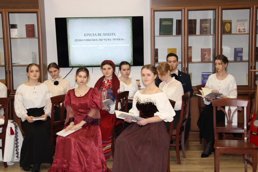 А далі численна глядацька авдиторія захоплено спостерігала за театрально-мистецьким дійством, творцями та постановниками якого стали студенти факультетів української та іноземної філології й початкової освіти та мистецтва, а також викладачі нашого університету (проф. Віра Котович, доц. Ярослав Лопушанський, доц. Марія Стецик, доц. Уляна Галів, доц. Петро Фриз, доц. Валерій Шафета), Дрогобицького музичного коледжу імені Василя Барвінського (Андрій Боженський), Дрогобицького механіко-технологічного коледжу (Роксолана Яцків), провідні фахівці Дрогобицького центру культури та мистецтв «Каменяр» (Осип Марущак, Іван Сех). На завершилося презентації прозвучали слова вдячності за свято Слова від проректора з наукової роботи д. пед. н., проф. Миколи Пантюка, декана факультету української та іноземної філології д. філол. н., проф. Петра Мацьківа, голови профкому працівників університету к. філол. н., доц. Олени Куцик з побажанням збірці «Крила великих» упевненого лету.