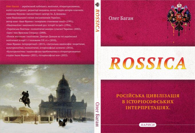 Щойно побачила світ книга нарисів доцента Дрогобицького педуніверситету ім. І.Франка Олега Багана «Rossica: Російська цивілізація в історіософських інтерпретаціях» (Тернопіль: Крила. 2022. 130 с.). Збірка має три тематико-методологічні напрямки: історіософський, культурологічний та політологічний. Зокрема автор з’ясовує глибинні історично-ідеологічні причини ненависті росіян до України, вивчає історію геополітичної ідеологеми «Москва – Третій Рим», пояснює логіку імперської експансії Московії в Східній Європі за законами геополітики як зіткнення інтересів телурократичної (суходільної) держави-цивілізації з таласократичними (приморськими) цивілізаційно-культурними центрами в цьому макрорегіоні, які виникли внаслідок впливів Заходу.