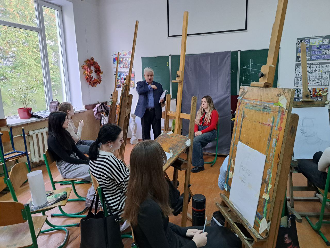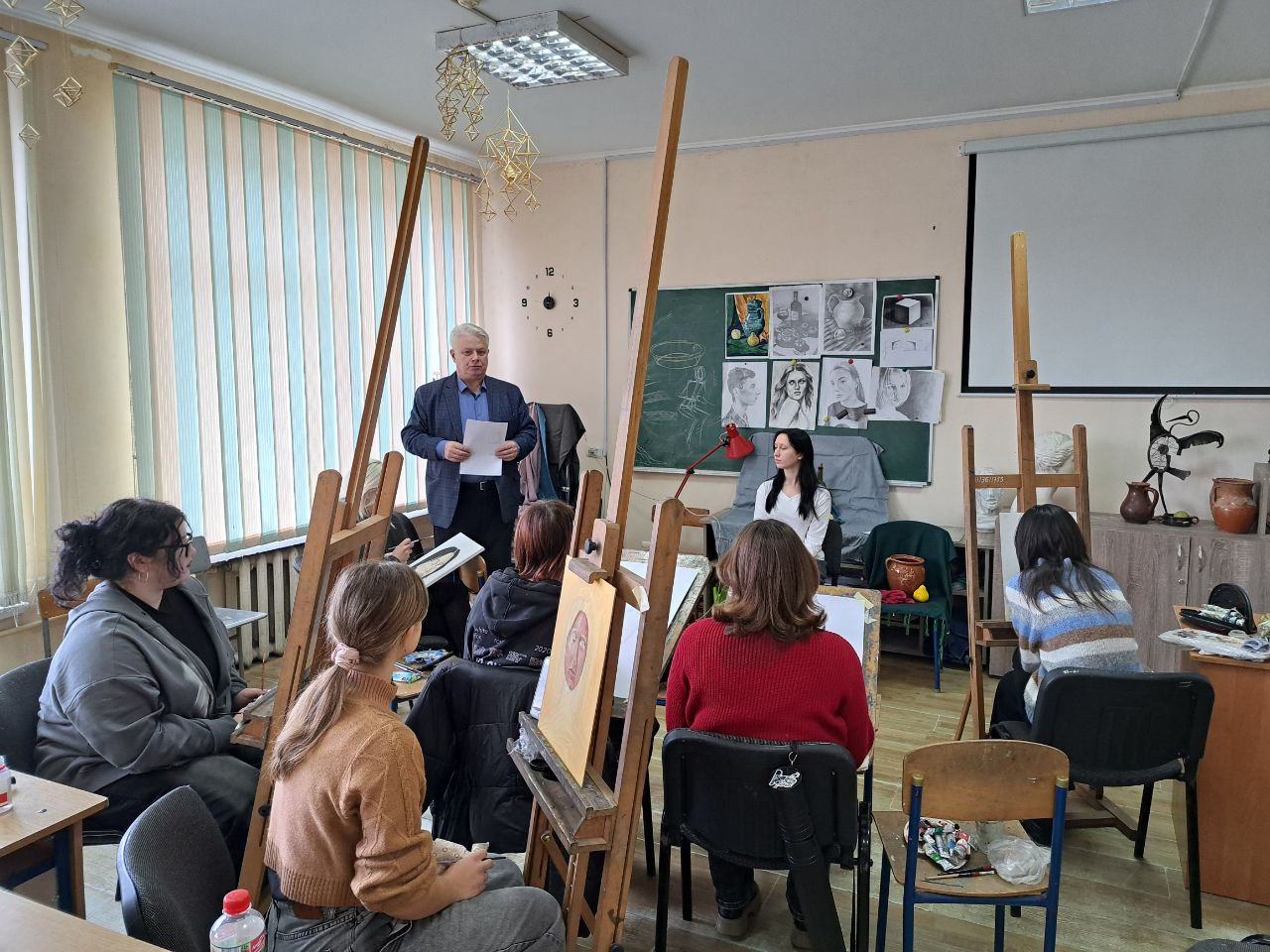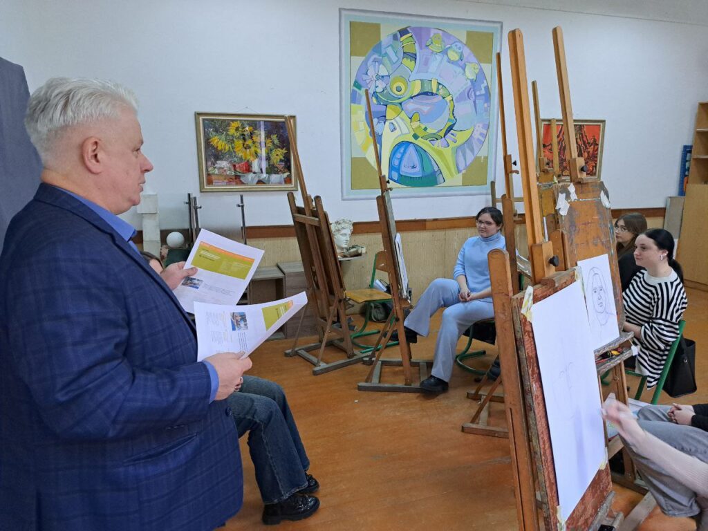 Доцент кафедри вокально-хорового, хореографічного та образотворчого мистецтва Михайло Сидор 21 листопада провів профагітацію з випускниками двох освітніх закладів – Підбузького мистецького ліцею імені Е. Миська та Самбірського фахового педагогічного коледжу ім. Івана Филипчака. Тематика обох заходів: «Вступ на навчання у ДДПУ ім. Івана Франка у 2025 р. для здобуття спеціальності “023. Образотворче мистецтво, декоративне мистецтво, реставрація» за першим (бакалаврським) РВО». На цих зустрічах слухачам було представлено ключові позиції освітньо-професійної програми «Образотворче мистецтво, декоративне мистецтво», в рамах якої відбувається здобуття цієї спеціальності в університеті, окреслено сфери застосування отриманих знань, розкрито і охарактеризовано перспективи кар’єрного росту фахівця такого профілю з дипломом «Бакалавра». Відтак вони ознайомилися із загальними правилами прийому на навчання для здобуття вищої освіти у ДДПУ ім. Івана Франка, умовами проведення конкурсу творчих здібностей для вступу на цю спеціальність на основі повної загальної середньої освіти, а також на основі ОКР молодшого спеціаліста, ОПС фахового молодшого бакалавра тощо. Студентам було цікаво дізнатися і про особливості проходження навчального процесу в університеті, про дозвілля студентів, умови проживання у гуртожитку.