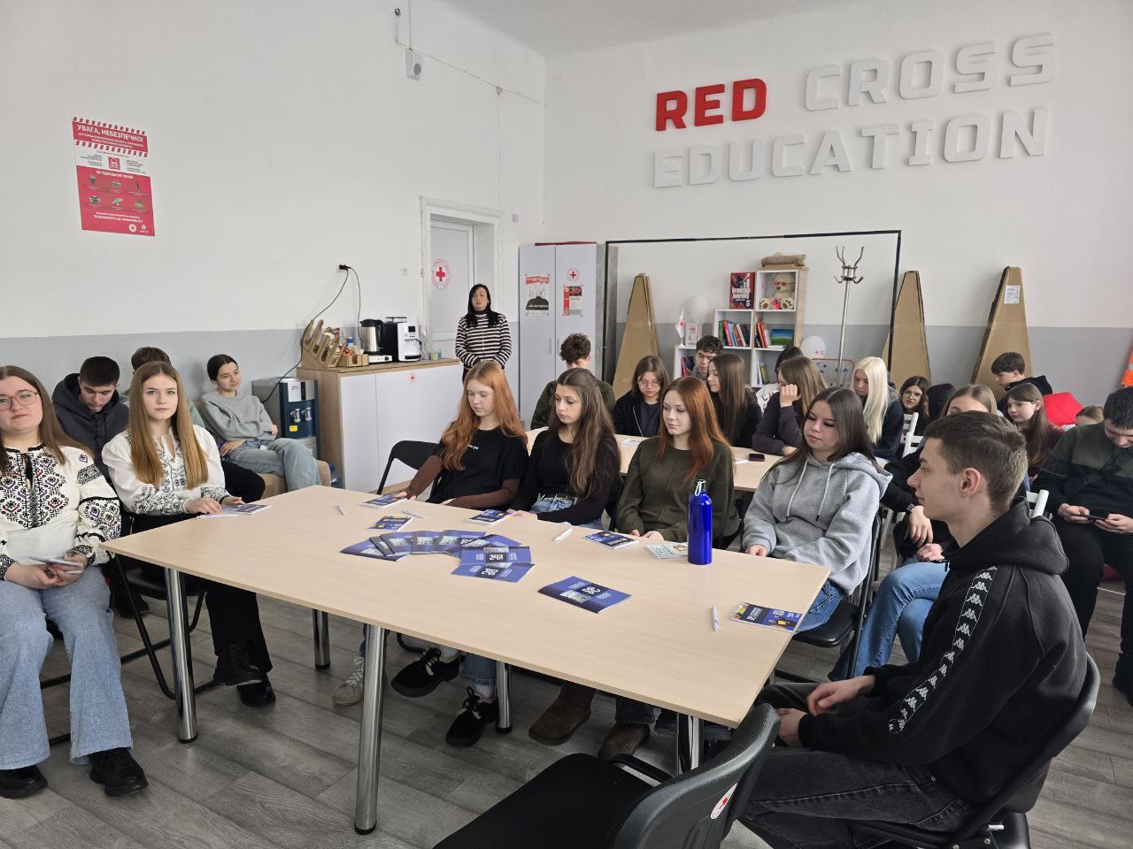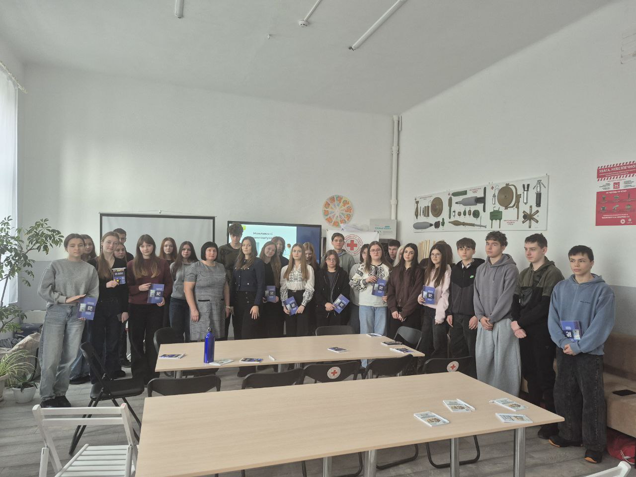 Особливу зацікавленість викликав інтерактивний блок зустрічі. Для учнів було проведено пізнавальну вікторину англійською мовою, що включала завдання на швидкість перекладу, розпізнавання автентичних фраз, культурні особливості англомовних країн та невеликі ситуативні кейси з реального життя. Старшокласники активно долучалися до обговорення, демонстрували високий рівень підготовки та креативність у відповідях. За найкращі результати та активність учасники отримали приємні подарунки від університету — брендовані сувеніри та інформаційні матеріали про вступ і навчання.