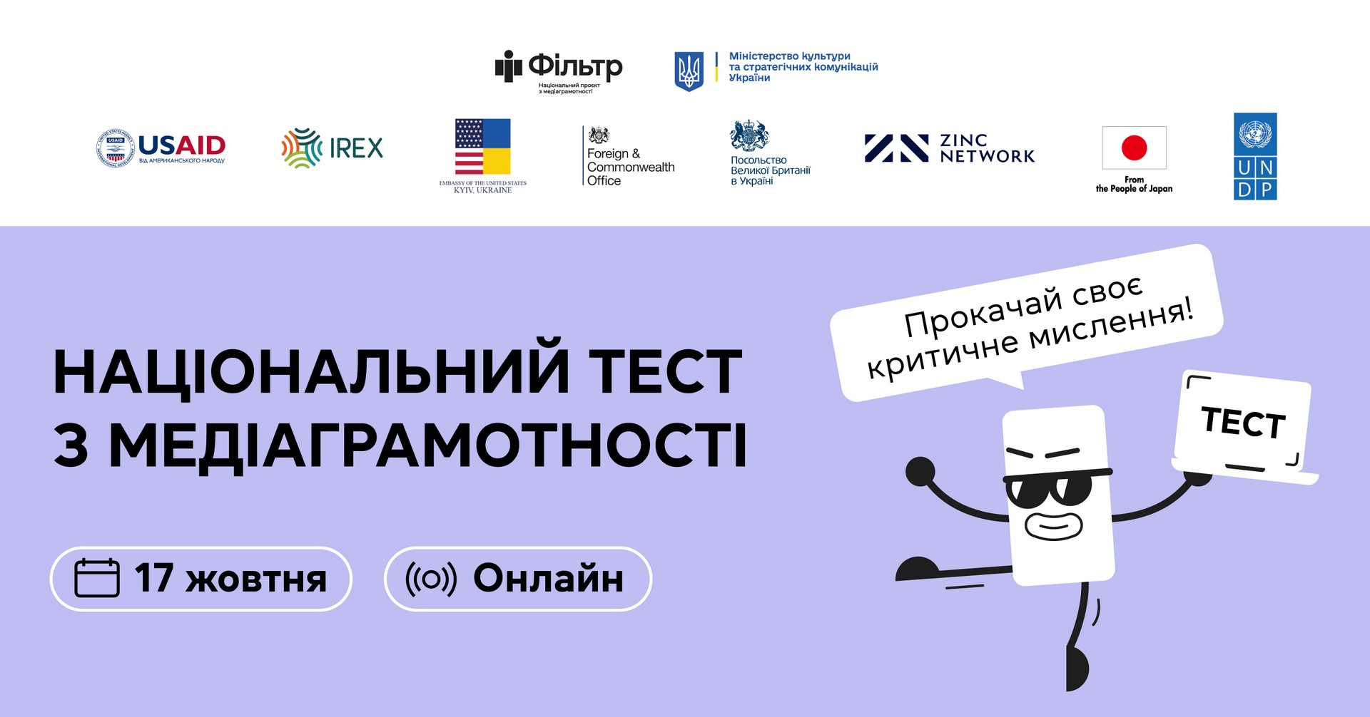 Проходьте 17 жовтня щорічний національний тест з медіаграмотності та вигравайте подарунки!
