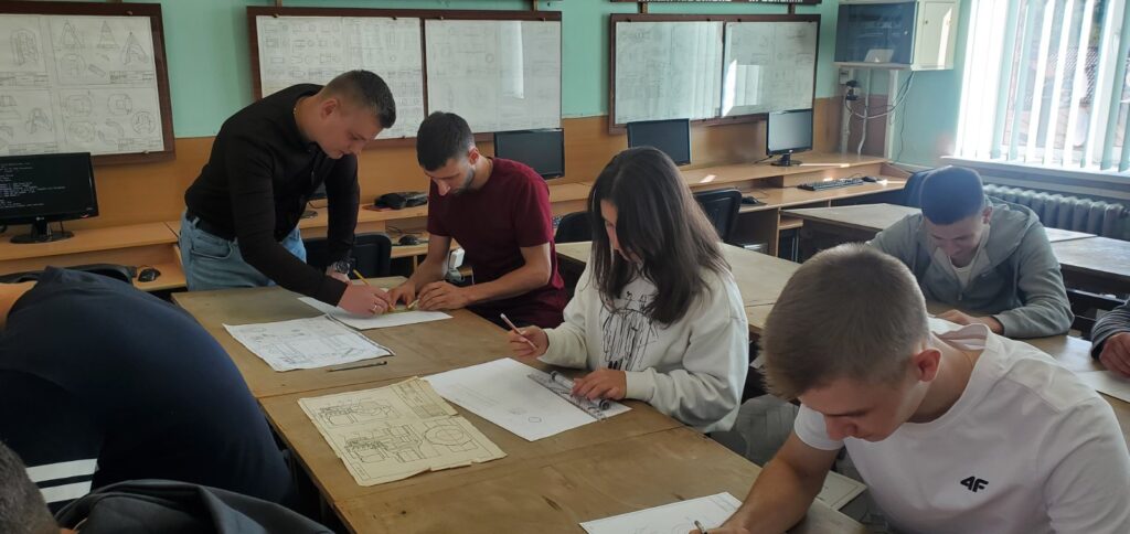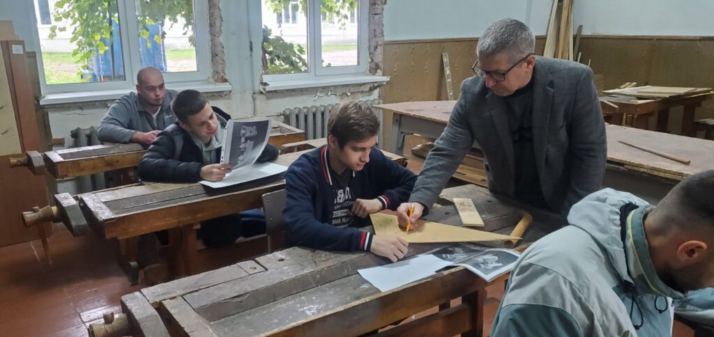Викладач Дмитро Нищак провів відкрите заняття з креслення, орієнтоване на ознайомлення студентів-першокурсників з основними геометричними побудовами та їх практичним застосуванням у процесі виконання креслеників технічних деталей. Своєю чергою Олександр Лузгінов у межах навчальної дисципліни «Технологічний практикум» провів цікаве заняття, на якому ознайомив студентів із технологією виготовлення підставки під вазони, акцентуючи увагу на практичних аспектах виконання основних технологічних операцій.