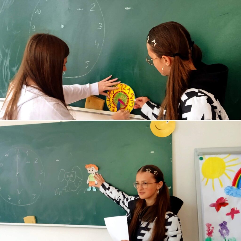 Заняття із формування часових уявлень та орієнтування в часі для старших дошкільників провела Олеся Полиняк. Вона продемонструвала різні види годинників, використовуючи під час своєї розповіді загадки, приказки; пояснювала, як плине час; який час показує годинна, хвилинна, секундна стрілка, швидкість руху кожної з них; навчала визначати час, під час виконання певної роботи (складати геометричні фігури з паличок, з камінчиків); провела ігри «Котра година», «Що робить наш казковий герой –Петрик о певній годині»; стимулювала «дітей» цінувати свій час.
