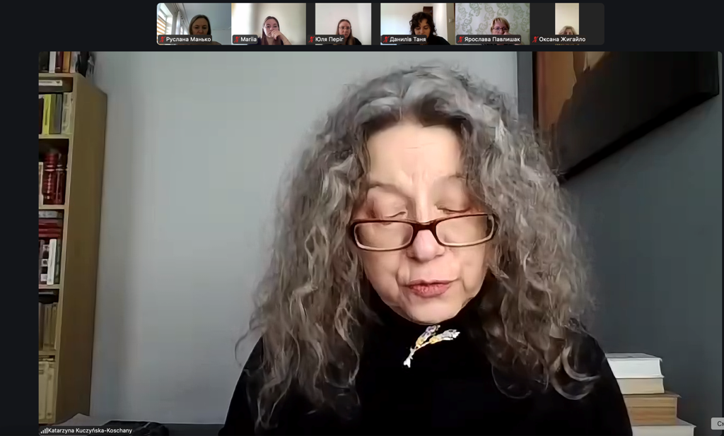 З інавґураційною лекцією виступила відома польська науковця, професорка Катажина Кучинська-Кошани, філологиня, літературознавиця, есеїстка та поетка, яка вже багато років активно співпрацює з Дрогобицьким університетом, зокрема в межах Міжнародного Фестивалю Бруно Шульца, циклічно організовуваного Полоністичним науково-інформаційним центром, що діє в університеті.