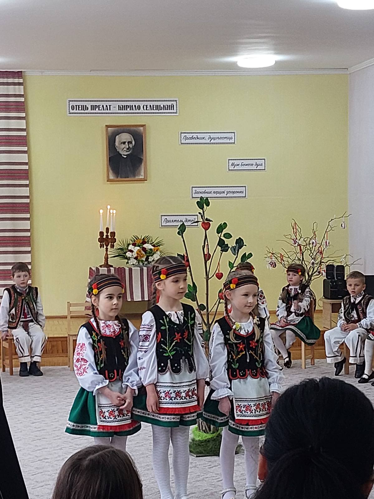 Авторський сценарій життя та діяльності о. Кирила Селецького розробили й сценічно представили педагоги: Тетяна Паньків, Тетяна Приступняк, асистентка вихователя Ольга Павлова, музичні керівники Марта Мала, Олександра Міхович з вихованцями старшої інклюзивної групи «Калинонька». Стилізований український одяг, виразне декламування віршів, пісні, танці, дитяча щирість у виступі малят і педагогів подарували присутнім відчуття щастя.