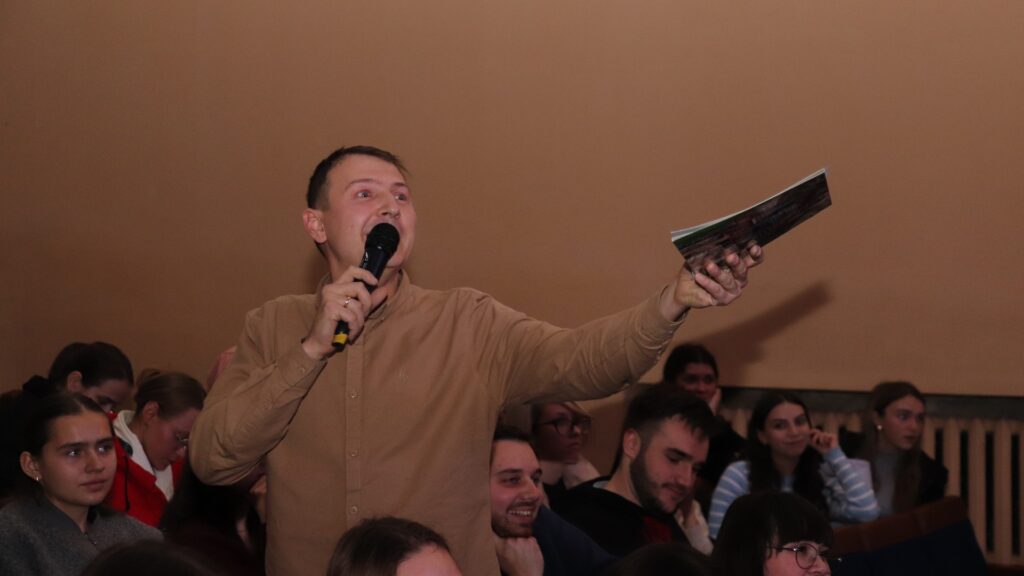 Організатор та ведучий заходу Ігор Гівчак, голова профкому студентів, повідомив, що проведення «Студентської ліги сміху» відновилося минулого року після тривалої перерви і висловив сподівання, що він стане традиційним в нашому університеті.