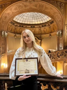 До Міжнародного дня студента в Будинку Вчених м. Львів відбулося вручення нагород здобувачам закладів фахової перед вищої та вищої освіти Львівщини. В п’ятницю 17 листопада студентка першого (бакалаврського) рівня вищої освіти Сергійчук Юлія Іванівна отримала обласну Премію імені В’ячеслава Чорновола. Науковий керівник лауреатки – Талалай Юлія Олегівна, завідувач кафедри англійської мови та перекладу.