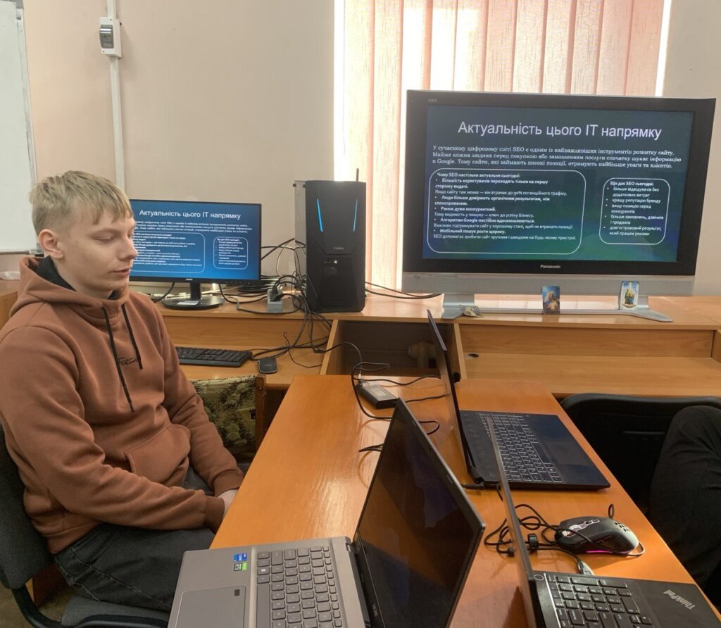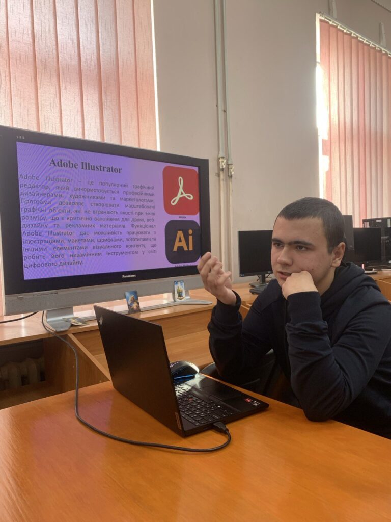 Під час презентацій Дмитро Красуляк розкрив основи SEO-оптимізації сайтів, пояснивши її роль у підвищенні видимості вебресурсів у пошукових системах. Назарій Коропісь представив доповідь, присвячену кібербезпеці, акцентувавши увагу на актуальних загрозах та важливості захисту інформації. Василь Татарський продемонстрував можливості професійного редактора векторної графіки Adobe Illustrator, показавши його практичне застосування у створенні сучасного дизайну.