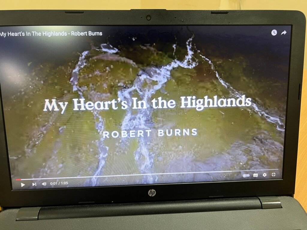 Учасники круглого столу переглянули короткі відео з краєвидами Шотландії, записом всесвітньо відомої пісні «Auld Lang Syne» на вірші поета, а також прослухали вірш «My Heart’s in the Highlands» у виконанні носія мови. Автентичні записи та репродукції портретів Роберта Бернса і його дружини Джин, мавзолею в містечку Дамфріс, де вони поховані, пам’ятників поету та його дружині, обкладинки книги про життя поета допомогли учасникам круглого столу зануритися в поетичну атмосферу та насолоджуватися віршами великого шотландського поета.