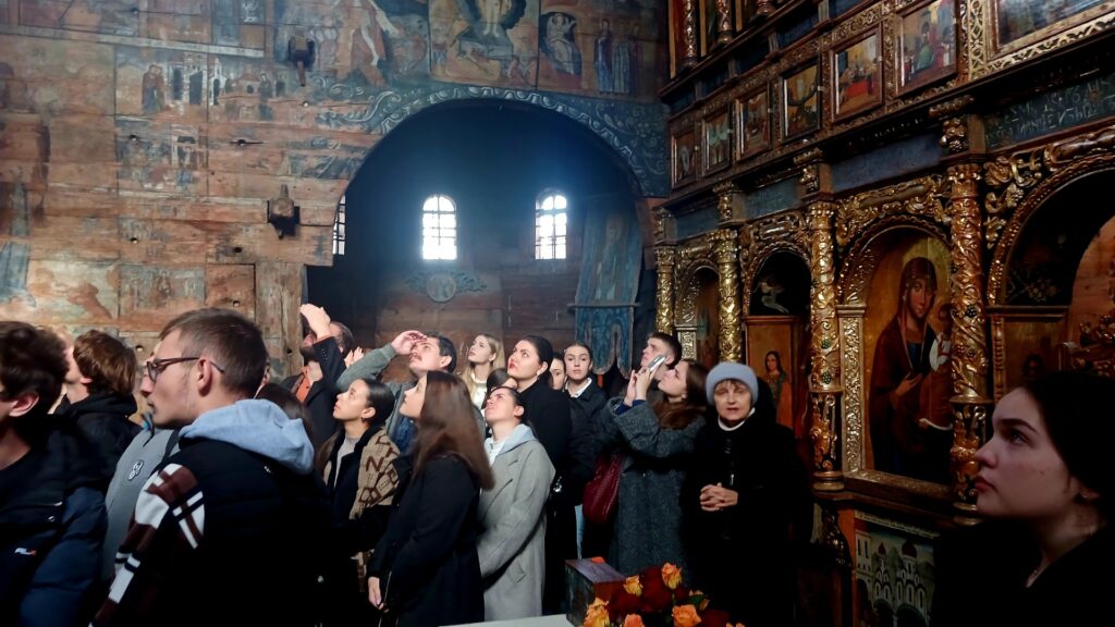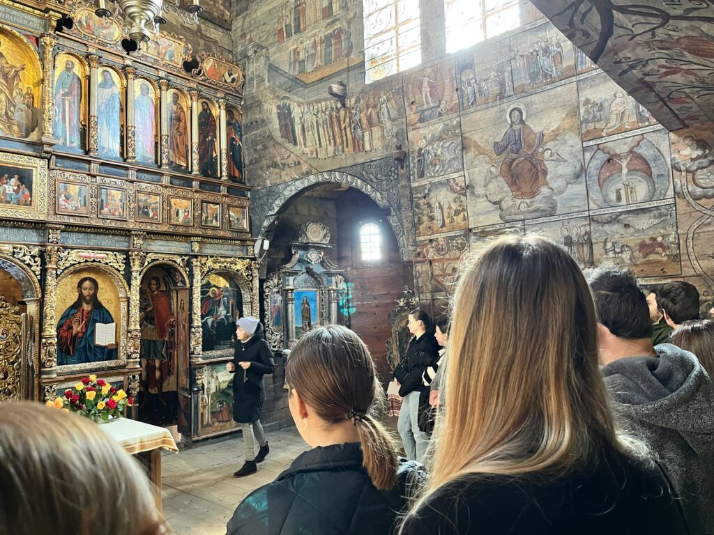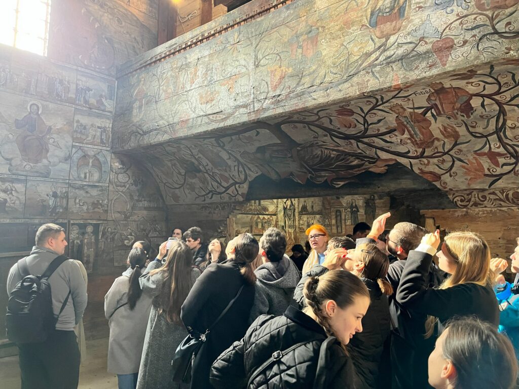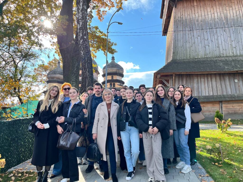 23 жовтня студенти 3 – 4 курсів спеціальності «Історія» разом із викладачами – кандидатками історичних наук, доцентками Русланою Попп, Галиною Гриценко та Іриною Лозинською – відвідали Церкву Святого Юра, унікальну пам’ятку архітектури національного значення та об’єкт Всесвітньої спадщини ЮНЕСКО. Під час пізнавальної екскурсії майбутні історики мали змогу ближче познайомитися з історико-культурною спадщиною рідного краю, оглянути зразки дерев’яного сакрального мистецтва та дізнатися про їхнє значення в контексті розвитку української архітектури. Екскурсовод розповіла багато цікавого про історію цієї святині, особливості її архітектурного стилю, художнє оформлення інтер’єрів  та духовне значення. Ми з великим зацікавленням слухали розповідь про історію Церкви Святого Юра, активно ставили запитання та обговорювали почуте.