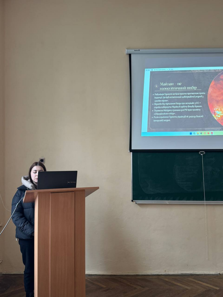 Для нас було важливо вшанувати пам’ять героїв Небесної Сотні, згадати події Майдану, глибше зрозуміти їх причини, перебіг та наслідки. Через доповіді, обговорення та аналіз різних аспектів студенти прагнули показати, що пам’ять про ці події є живою, а їх значення — актуальним і сьогодні.