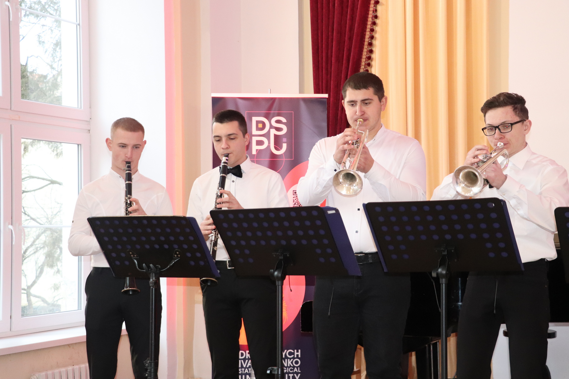 Напередодні різдвяних свят в університеті відбулась унікальна подія, наповнена чудовою різножанровою музикою, гарним настроєм та позитивними емоціями. Студенти класу духових інструментів викладачів Романа та Миколи Михаців презентували звітній концерт, де прозвучали твори класичної, естрадно-джазової та патріотичної тематики.