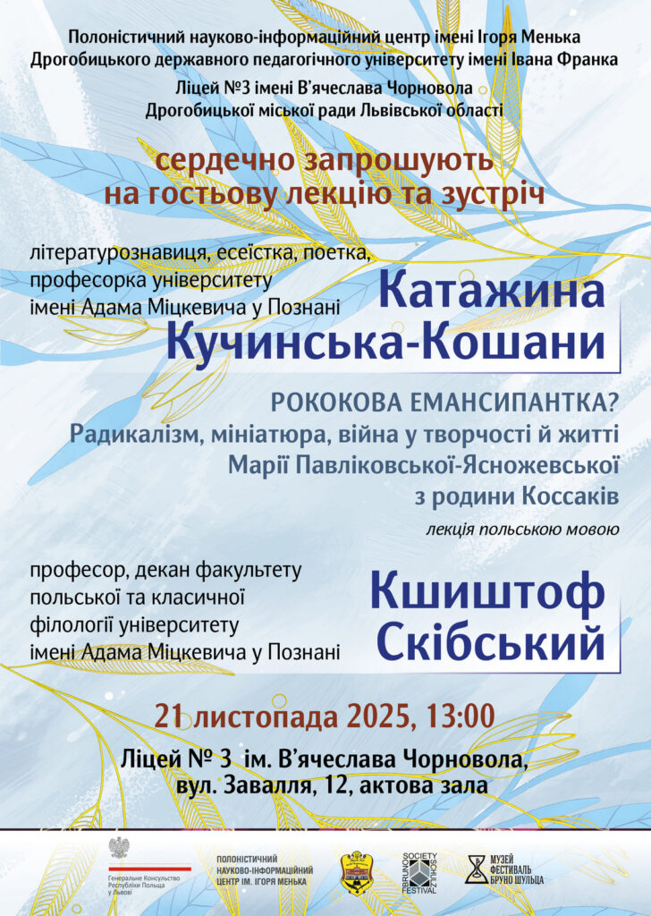 Найістотнішим і найціннішим виразом солідарності з Україною є продовження та  поглиблення співпраці з нашими польськими партнерами в умовах війни з російським агресором. Черговим свідченням цього стала участь польських й німецьких науковців, літераторів, митців та суспільно-культурних дієвців у міжнародному проекті  Полоністичного науково-інформаційного центру Друга Осінь, який майже чверть століття щороку відбувається 19–20 листопада, у роковини загибелі Бруно Шульца. Серед особливо очікуваних гостей  події були професорка Познанського університету імені Адама Міцкевича Катажина Кучинська-Кошани й декан факультету польської та класичної філології цього ж університету професор Кшиштоф Скібський.