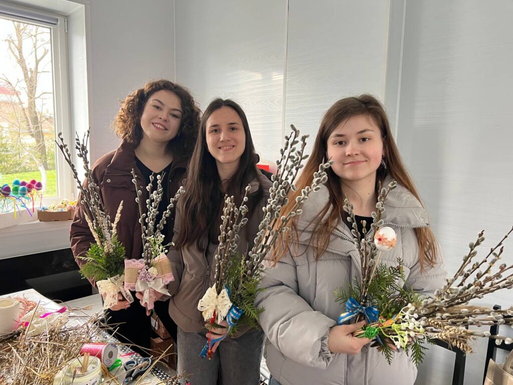 У межах продовження акції «Твори добро на цій землі» та профорієнтаційною метою доцент Галина КРЕЧКІВСЬКА та студенти-біологи Катерина ТИС, Софія КИРИЛИЧ, Анастасія МАРКОВИЧ, Тетяна ЧАПЛЯ, Ірина ЛИТВИНКО та Іванна ХАНАС у понеділок 30 березня провели чергову зустріч у ГО «Дрогобицьке добровільне товариство дітей та осіб з інвалідністю «Надія». Напередодні Вербної неділі тут розгорнулася справжня творча майстерня з декорування святкових вербових гілочок, які здавна є символом весняного відродження, життєвої сили та нового початку.