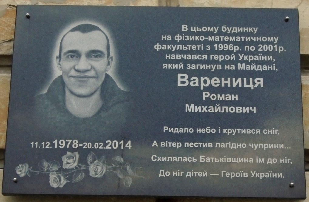 Зазначимо, що серед Героїв Небесної Сотні, які загинули на Євромайдані, є дрогобичани: Йосип Шілінґ, Богдан Вайда та Олег Ушневич. Також серед полеглих мітингувальників – випускник університету Роман Варениця, який працював учителем математики в селі Смолин на Яворівщині. З перших днів Революції Гідності Роман долучився до протестувальників, був у 1-й сотні Самооборони. Уранці 20 лютого 2014 року Роман з побратимами намагалися відтіснити силовиків з вулиці Інститутської, однак ті почали стріляти – у Романа влучили дві кулі й чоловік загинув миттєво.
