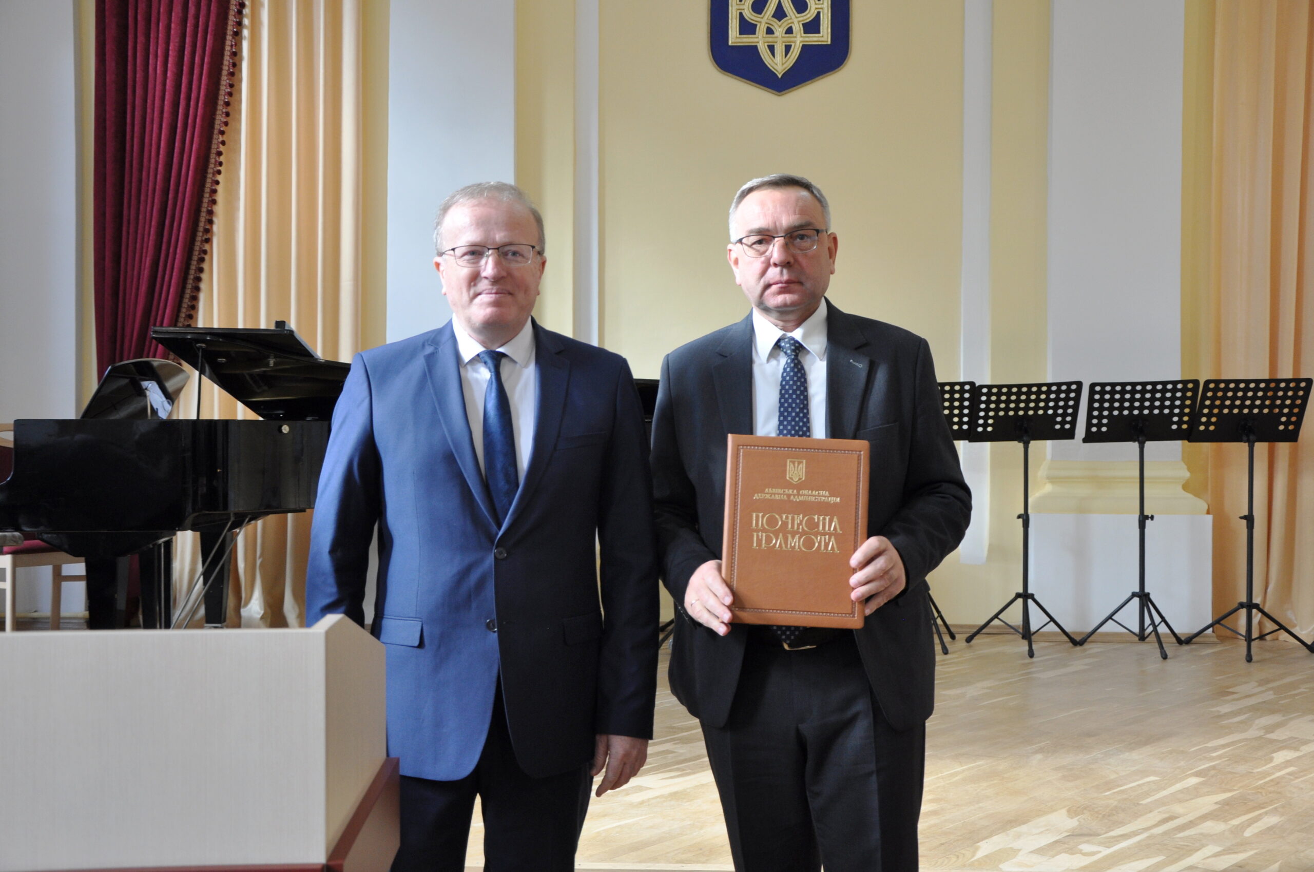 Директор департаменту освіти і науки Львівської облдержадміністрації Олег Паска привітав колектив університету з 85-річчям, зазначивши: «Ми сьогодні у закладі, який плекає нашу національну ідентичність, випускники якого формують якість нашої освіти. У яку б школу я не приїхав, коли приходжу до успішного вчителя, це, як правило, випускник Дрогобицького педагогічного університету. Цей чудовий заклад вищої освіти суттєво вплинув і на мою долю. Я обрав професію освітянина тому, що мав за взірець особистий приклад мого вчителя фізики, який закінчив у післявоєнні роки Дрогобицький інститут. Від імені Львівської обласної військової адміністрації, очільника області Максима Козицького та департаменту освіти висловлюю вам велику подяку й запевняю: ви завжди можете розраховувати на нашу підтримку. Подальших успіхів вам на наступну сотню років», – висловив побажання керівник департаменту освіти і науки ЛОДА.