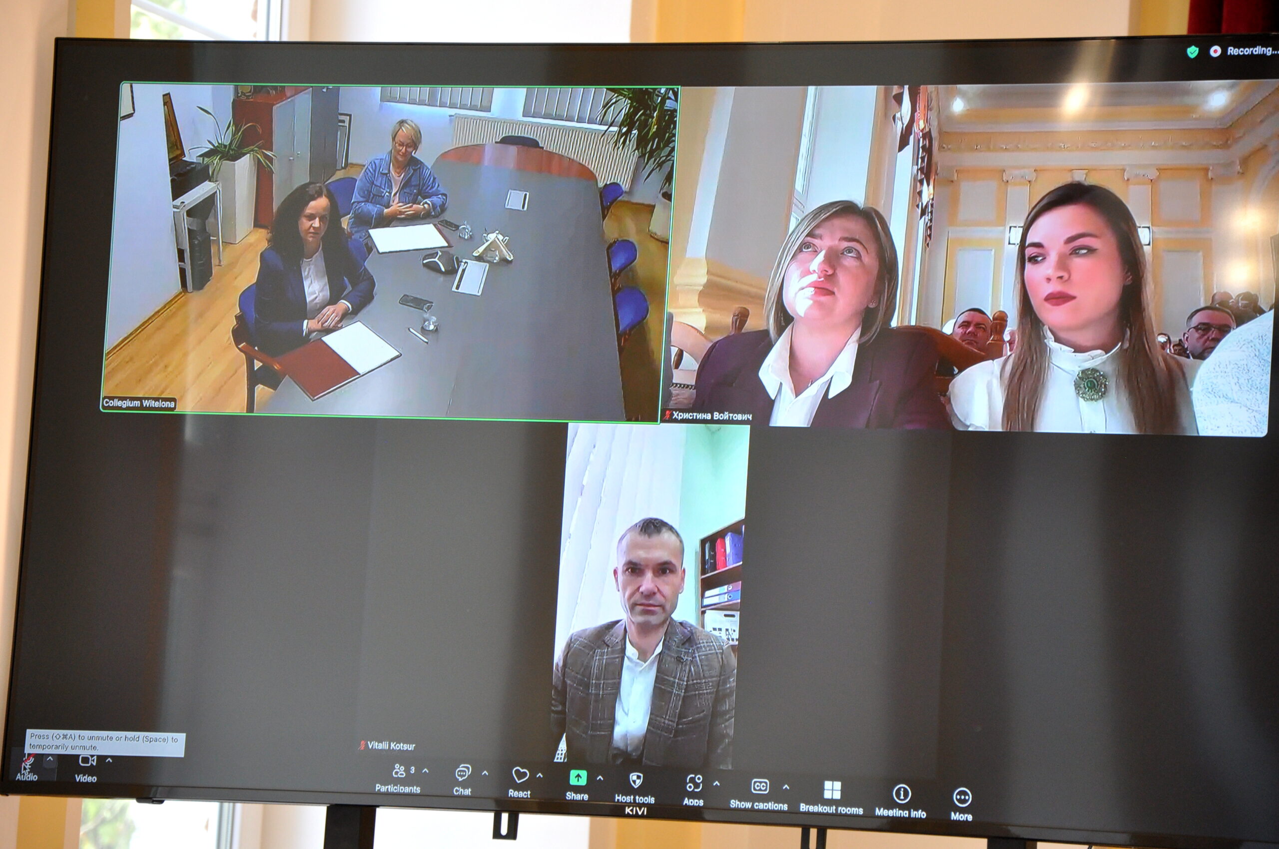 Дистанційно вітання озвучили: ректор університету імені Григорія Сковороди у Переяславі професорВіталій Коцур; почесна докторка Дрогобицького університету, членкиня громадської організації «Спільнота академічна» докторка Беата Скварек; проректорка з міжнародних зв’язків колегіуму Вітелона (Республіка Польща) докторка Богуміла Вонторек; До привітань також приєдналися: Іван Гадзаман, кандидат фізико-математичних наук, доцент кафедри фізики та інформаційних систем, який упродовж трьох з половиною років – у лавах ЗСУ, почесні доктори Дрогобицького університету: Патрік Беллінка – президент неприбуткової організації Орадеа, (Бельгія); Сильвестр Чопек – ректор Жешівського університету 2016-2024рр (Польща); Вацлав Вєржбєньца – професор Жешівського університету; Ренольднер Клеменс -професор Зальцбурського університету; Томас Бауер – керівник відділу міжнародної співпраці Віденського педагогічного інституту (Австрія); Андреас Венінгера – аташе з питань науки та освіти Посольства Республіки Австрія в Україні.