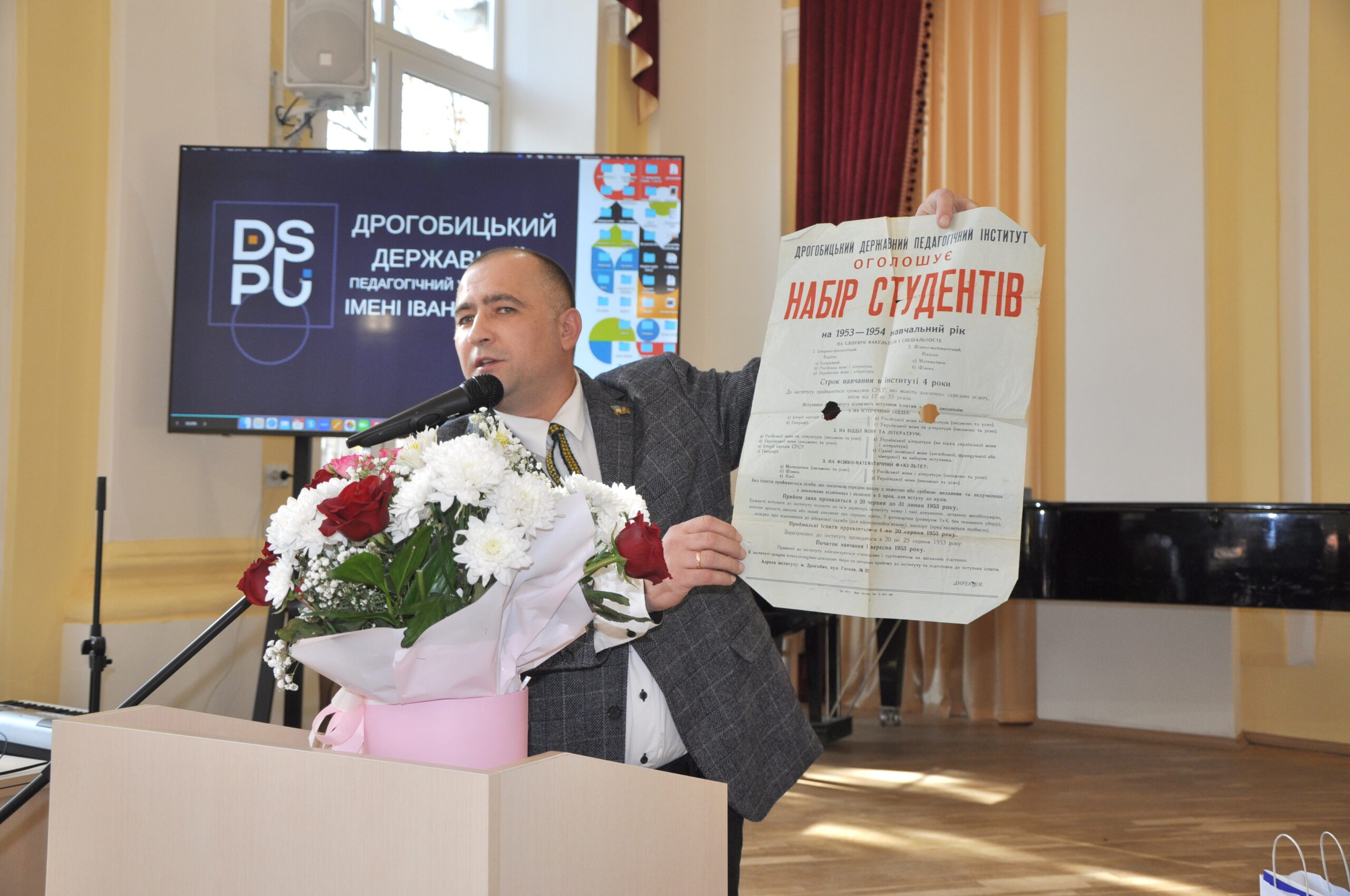 «Дрогобичу дуже пощастило, що 85 років тому тут було засновано вчительський інститут, якому згодом присвоїли ім’я нашого видатного земляка Івана Франка, – переконаний голова Дрогобицької районної військової адміністрації Степан Кулиняк. – Наш Дрогобицький педагогічний університет має славну історію – він, без перебільшення, став осередком освіти, науки, культури, про нього знають далеко за межами України. Тут отримали освіту тисячі професіоналів своєї справи, патріотів своєї країни, які зараз боронять її. Це все, безумовно, заслуга викладацького колективу. Тому я хочу висловити щирі слова вдячності та поваги за вашу працю, за те, що ви є тими справжніми світочами, які запалюють вогонь знань у серцях студентів».