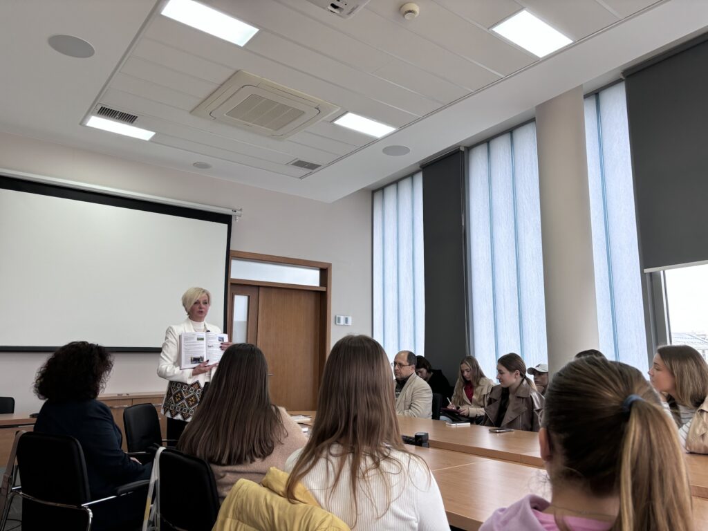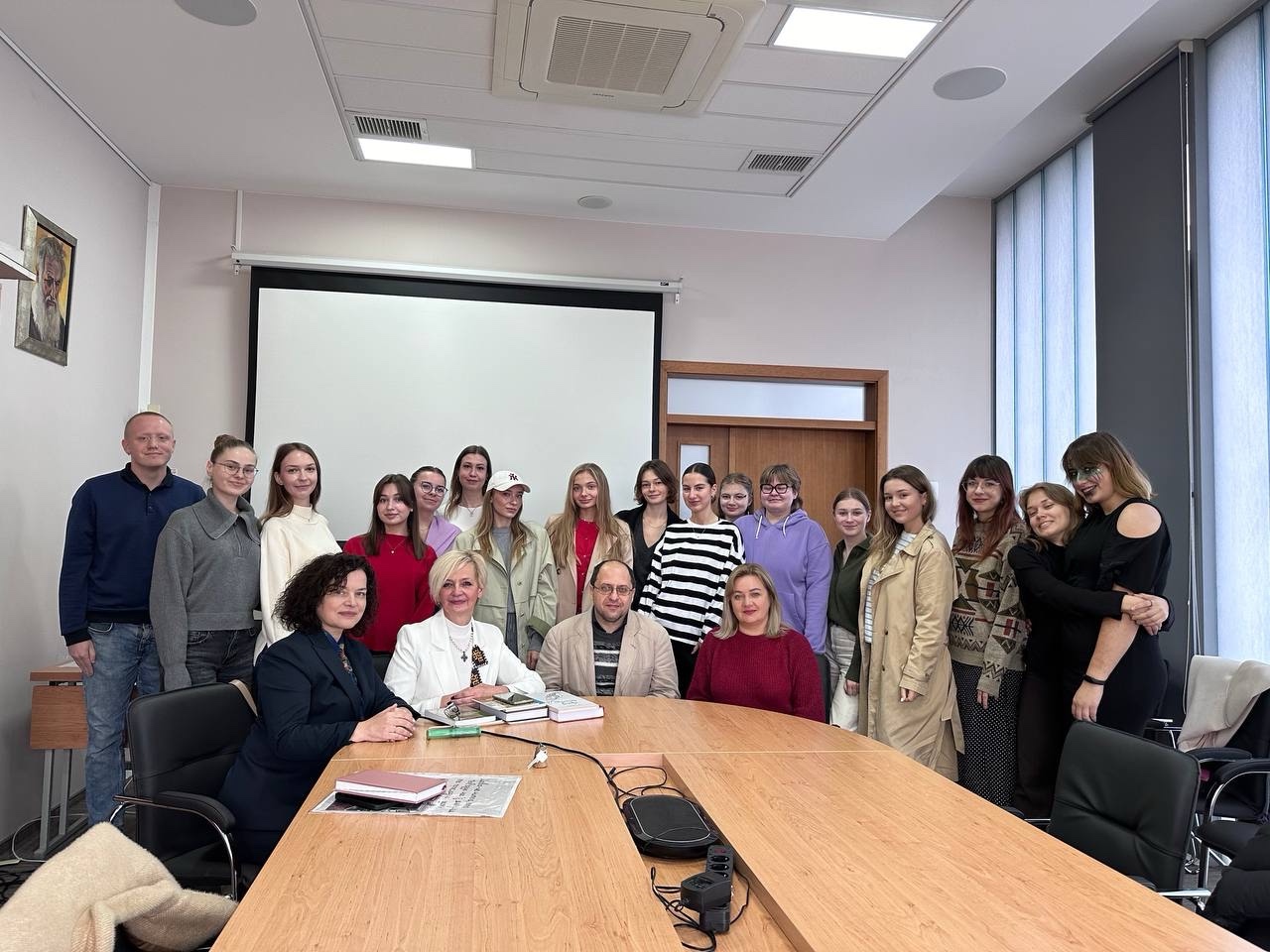 Лекторка познайомила студентів зі своїм науковим доробком, з матеріалами ономастичних та лінгвокультурологічних видань: «Походження назв населених пунктів Опілля», «Походження назв населених пунктів Перемишлянщинии», «Походження назв населених пунктів Дрогобиччини», «Походження назв населених пунктів Самбірщини», «Походження назв населених пунктів Тернопільщини» (у співавторстві з проф. Дмитром Бучком), «Ойконімія України як лінгвокультурний феномен», «Назви міст України: лінгвокультурологічний словник». Остання праця викликала чи не найбільше зацікавлення у студентів, позаяк кожен хотів дізнатися пізнавальну та водночас науково обґрунтовану інформацію про походження назви рідного міста.