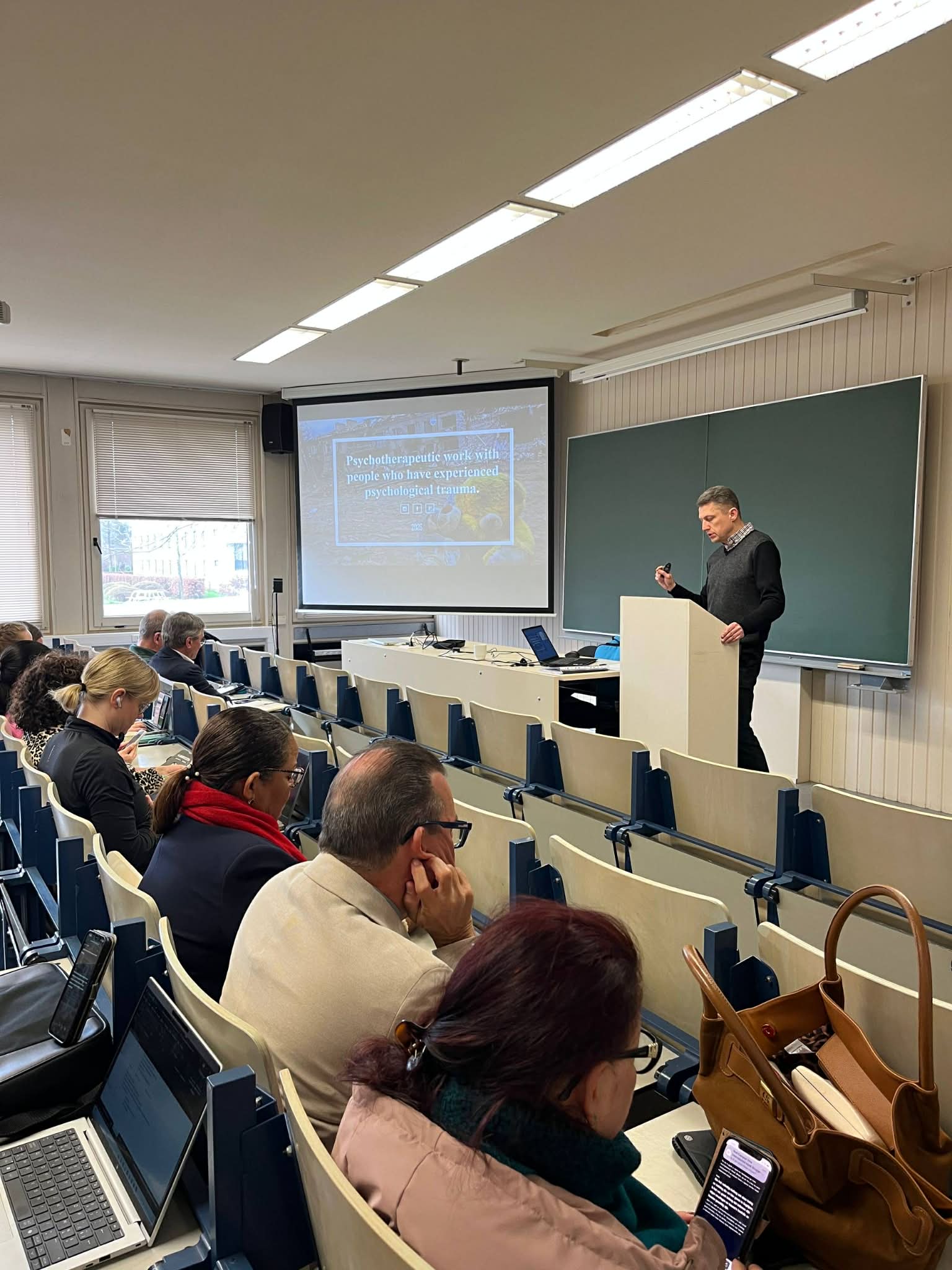Керівник групи доцент кафедри психології Андрій Зимянський у рамах проєкту прочитав лекцію за темою «Психотерапевтична робота з людьми, які пережили психологічну травму», а також виступив на сесії для співробітників з Бельгії, Фінляндії, Естонії та Польщі «Колективна травма та колективна стійкість сьогодні» з доповіддю «Стійкість українського народу та суспільства під час війни з росією».