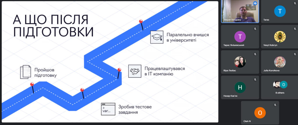 З огляду на це, а також на той факт, що кафедра фізики та інформаційних систем Дрогобицького університету вже багато років поспіль успішно готує ІТ-фахівців за сучасними методиками та з використанням новітніх технологій в освіті, студенти та викладачі взяли участь у вебінарі на тему «Побудова кар’єри в ІТ на падаючому ринку», організованим компанією Freshcode для студентів, які навчаються за освітньо-професійними програмами «Комп’ютерні науки», «Комп’ютерна фізика», «Середня освіта (Інформатика)», «Середня освіта (Фізика, інформатика)», «Середня освіта (Математика, інформатика)».