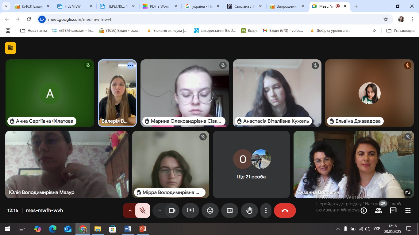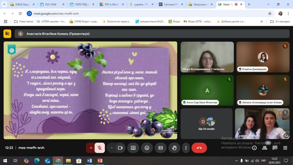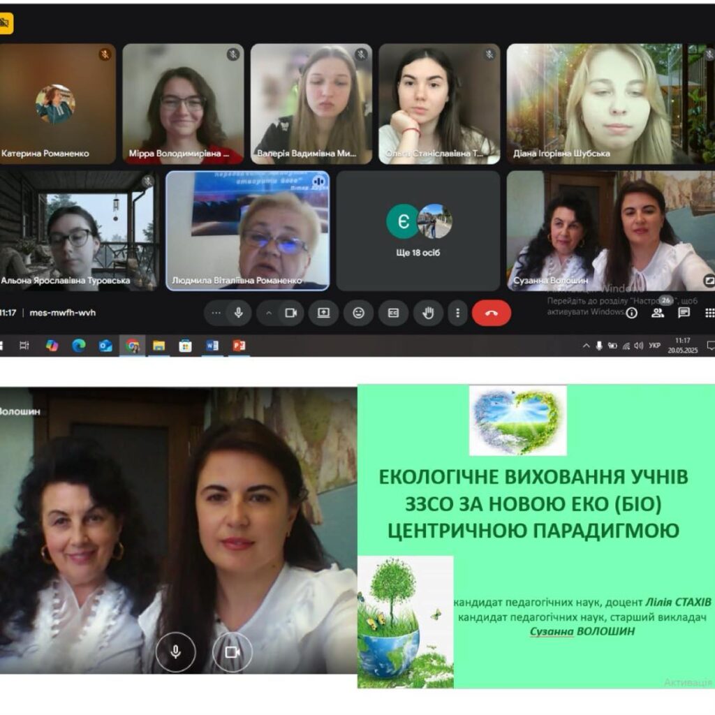 20 травня канд. педагогічних наук, доцентка кафедри педагогіки та методики початкової освіти Лілія Стахів  та канд. педагогічних наук, старша викладачка кафедри біології та хімії Сузанна ВолошинДрогобицького державного педагогічного університету імені Івана Франка взялиу  часть у гостьовому онлайн-семінарі, який проводився за ініціативи кафедри початкової освіти факультету педагогічної освіти Київського столичного університету імені Бориса Грінченка в межах вивчення навчальної дисципліни «Математична і природнича освіта: Природознавство з методикою навчання» на тему «Екологічне виховання учнів закладів загальної середньої освіти за еко(біо) центричною парадигмою» для студентів 2 курсу ОПП 013.00.01 Початкова освіта першого (бакалаврського) рівня вищої освіти.