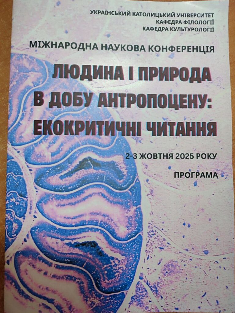 У Львові в Українському католицькому університеті 2-3 жовтня відбулася Міжнародна наукова конференція «Людина і природа в добу антропоцену: екокритичні читання», у якій взяли участь представники кафедри зарубіжної літератури та полоністики ДДПУ. Захід відбувався в комбінованому форматі (наживо та онлайн – на платформі «Zoom»). Наукове дійство розпочалося вітальним виступом декана гуманітарного факультету УКУ Андрія Ясіновського. Також слова вітання висловили представники іноземних інституцій. Конференція об’єднала понад 70 учасників, з них – представники Канади, Великої Британії, Польщі, Італії, Австрії, Німеччини, Грузії.