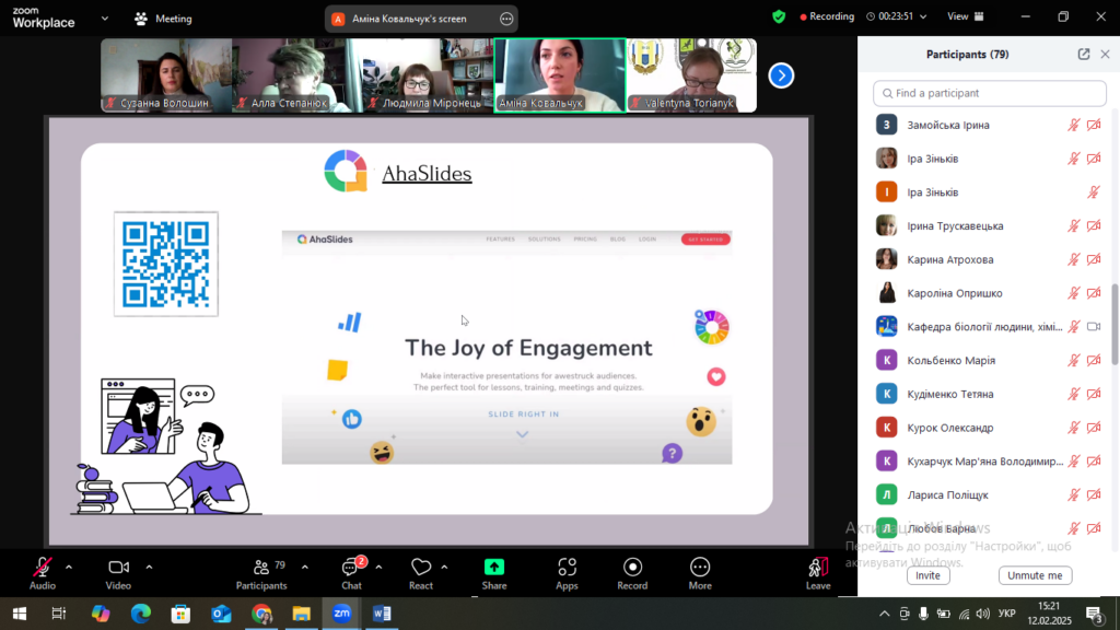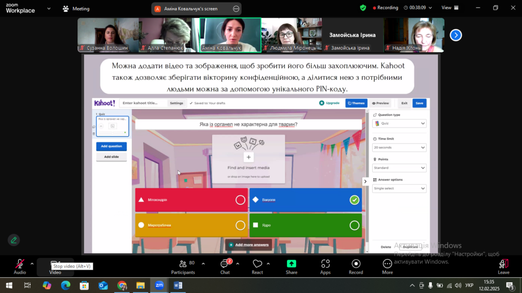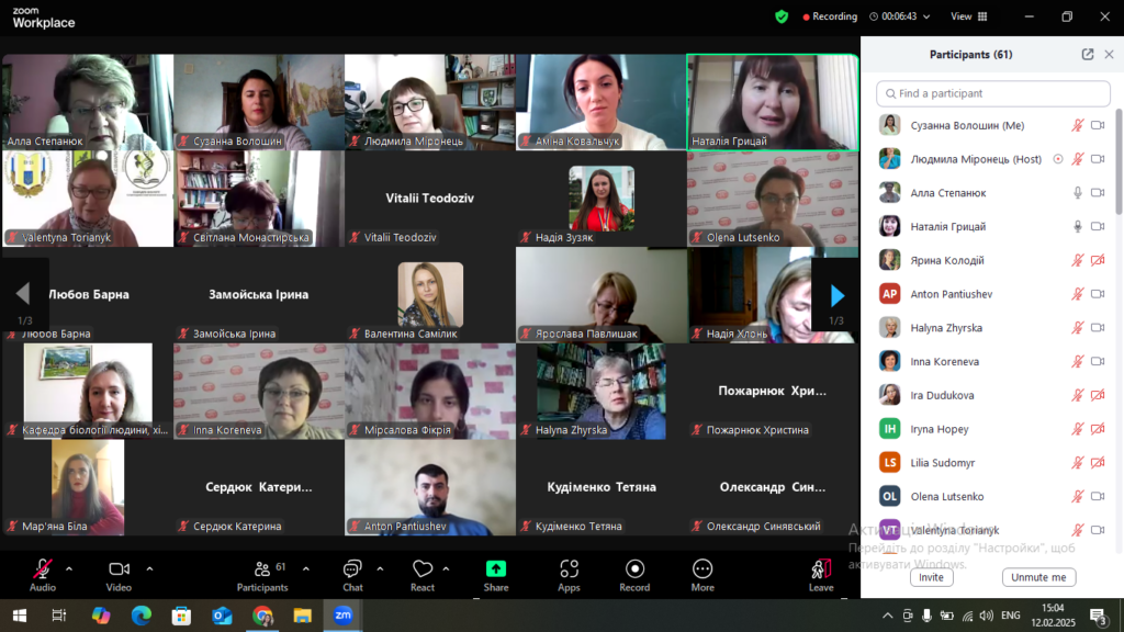 12 лютого 2025 року у межах співпраці з Тернопільським Національним педагогічним університетом імені Володимира Гнатюка професорсько-викладацький колектив кафедри біології та хімії та здобувачі факультету здоров’я людини та природничих наук Дрогобицького державного педагогічного університету імені Івана Франка взяли участь у Міжнародному відкритому міжвузівському лекторію «Професійно-методична підготовка педагога з проблем природничої освіти». Доценти кафедри Світлана Монастирська, Ярослава Павлишак та старший викладач Сузанна Волошин мали можливість почути цікаві ідеї з приводу використання цифрових технологій на уроках біології, а саме: MOZAIKeducation, Клас Google, AhaSlides – Жива вікторина, Хмара слів, Прямий ефір, Baamboozle, Trello, ClassDojo, Quizalize, SeeSaw, Kahoot.