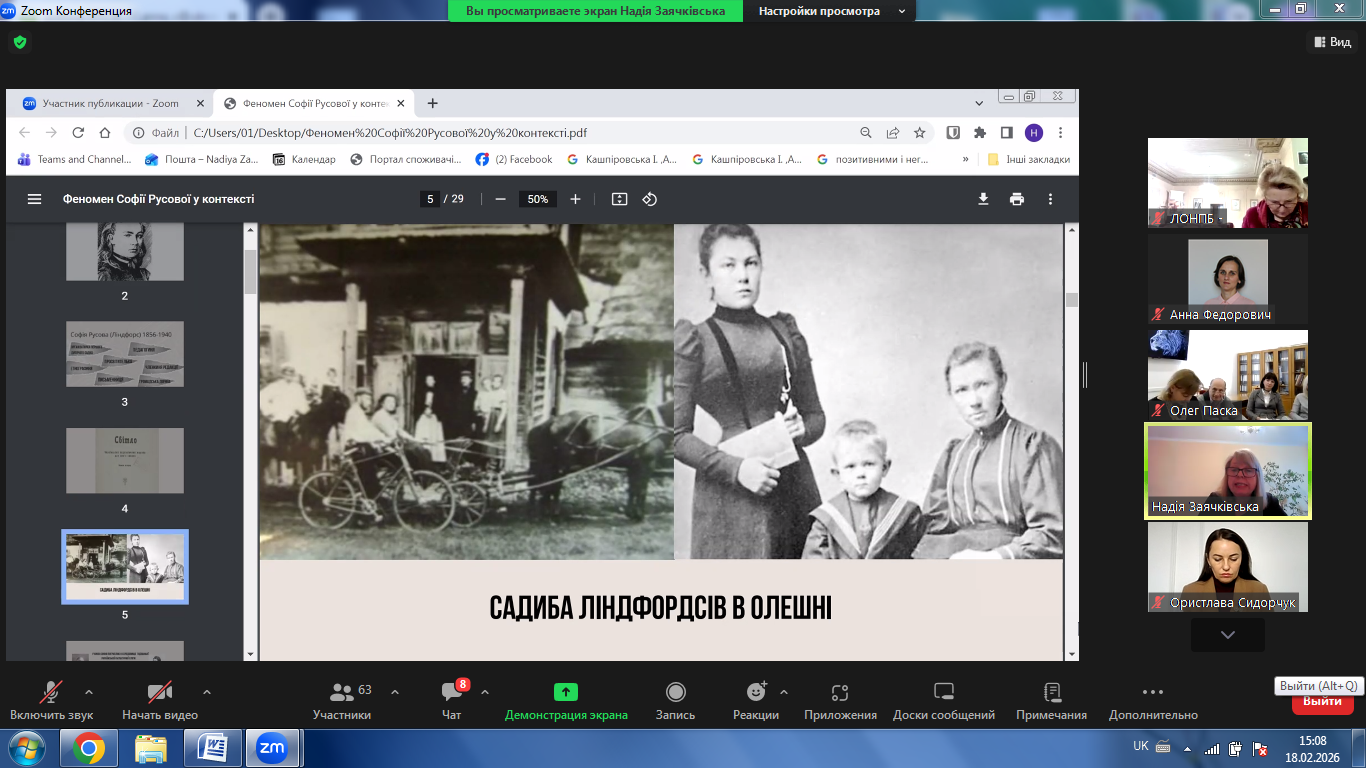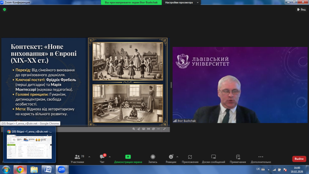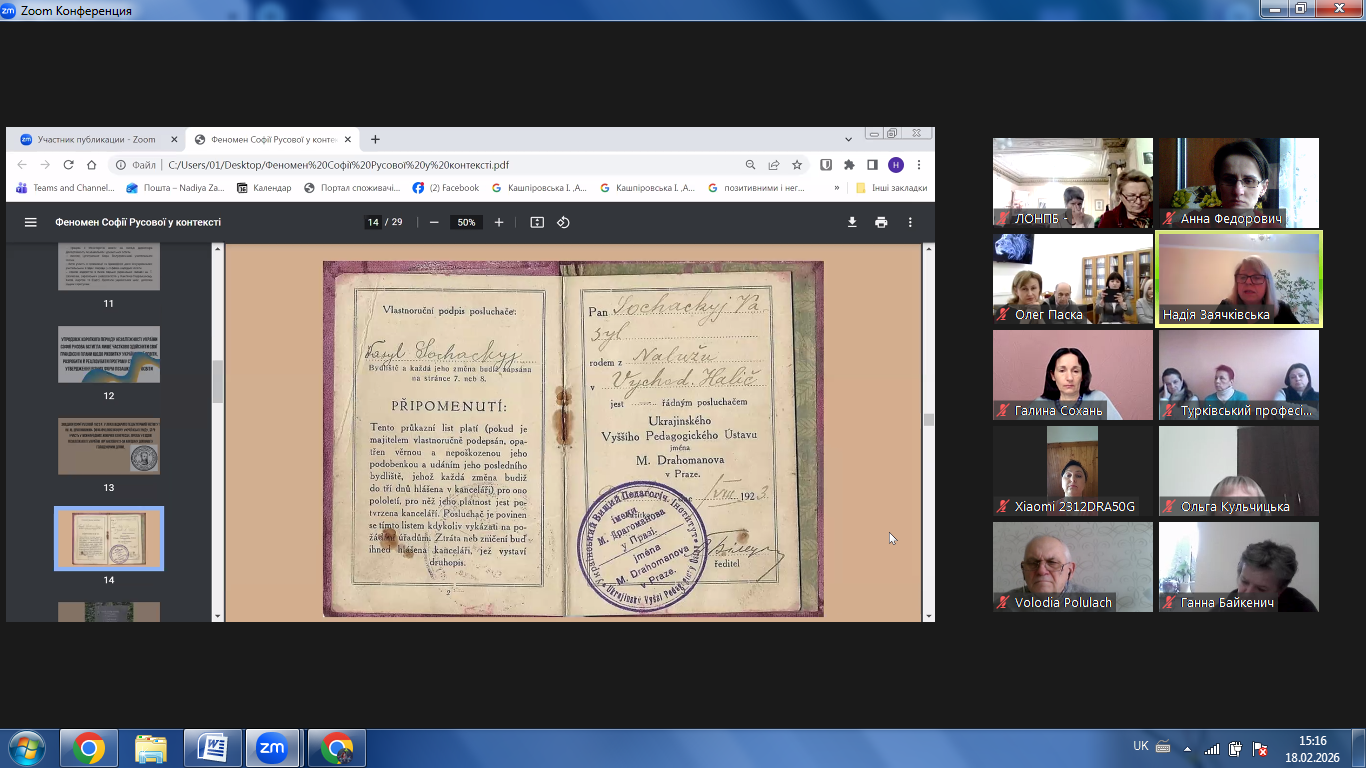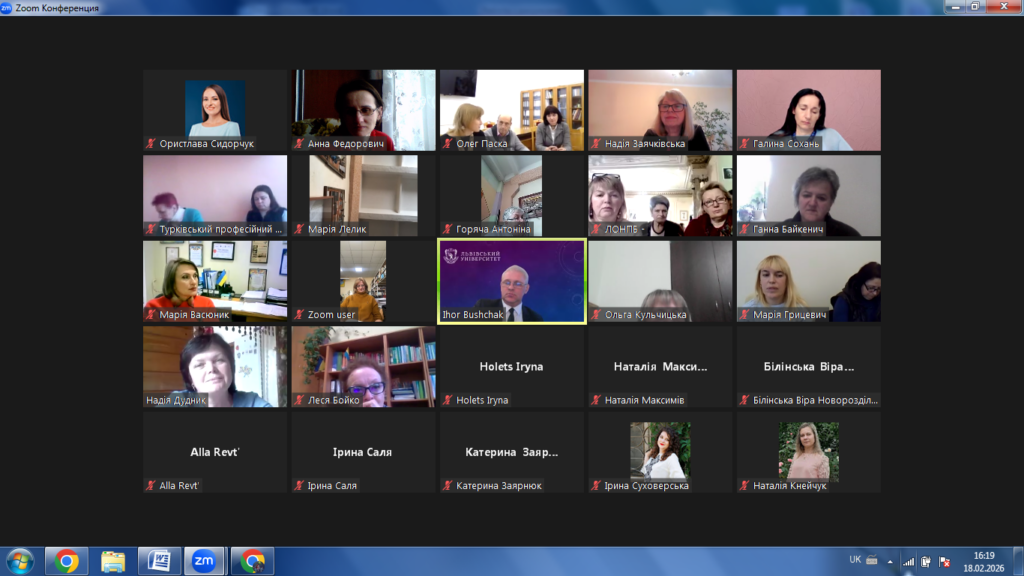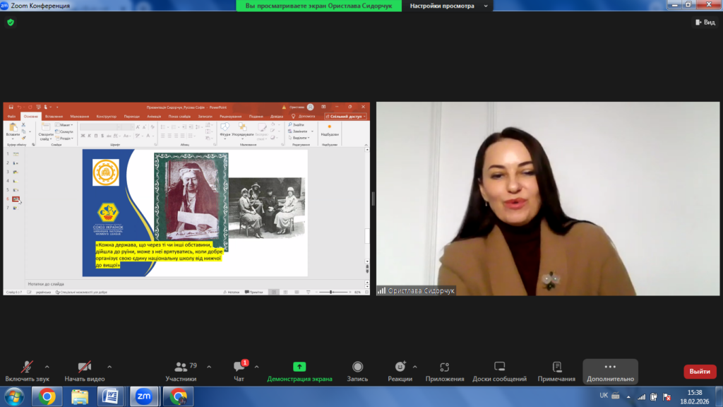 18 лютого викладачі кафедри загальної педагогіки та дошкільної освіти факультету історії, педагогіки та психології ДДПУ взяли участь в онлайн -зустрічі освітян Львівщини «Актуальні ідеї Софії Русової в ХХІ столітті». Круглий стіл, приурочений до 170-річчя від дня народження видатної української просвітниці, організував департамент освіти і науки ЛОДА.