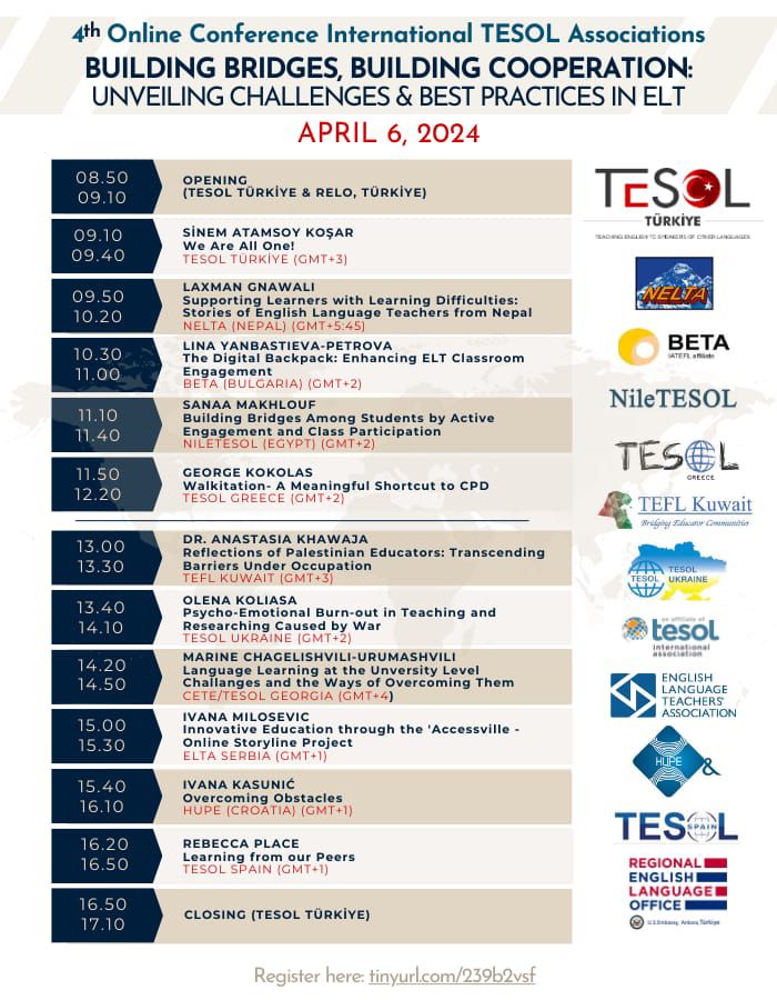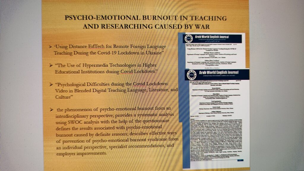 На 4-й щорічній конференції Міжнародної асоціації TESOL єдина представниця України Олена Коляса, кандидатка філологічних наук, доцентка Дрогобицького державного педагогічного університету, 6 квітня поділилася цінними думками щодо теми «Проблеми психоемоційного вигорання серед науковців та освітян: можливі шляхи вирішення та терапія», де розглянула виклики, які поставила пандемія COVID та війна перед системою української освіти, українськими освітянами та науковцями.