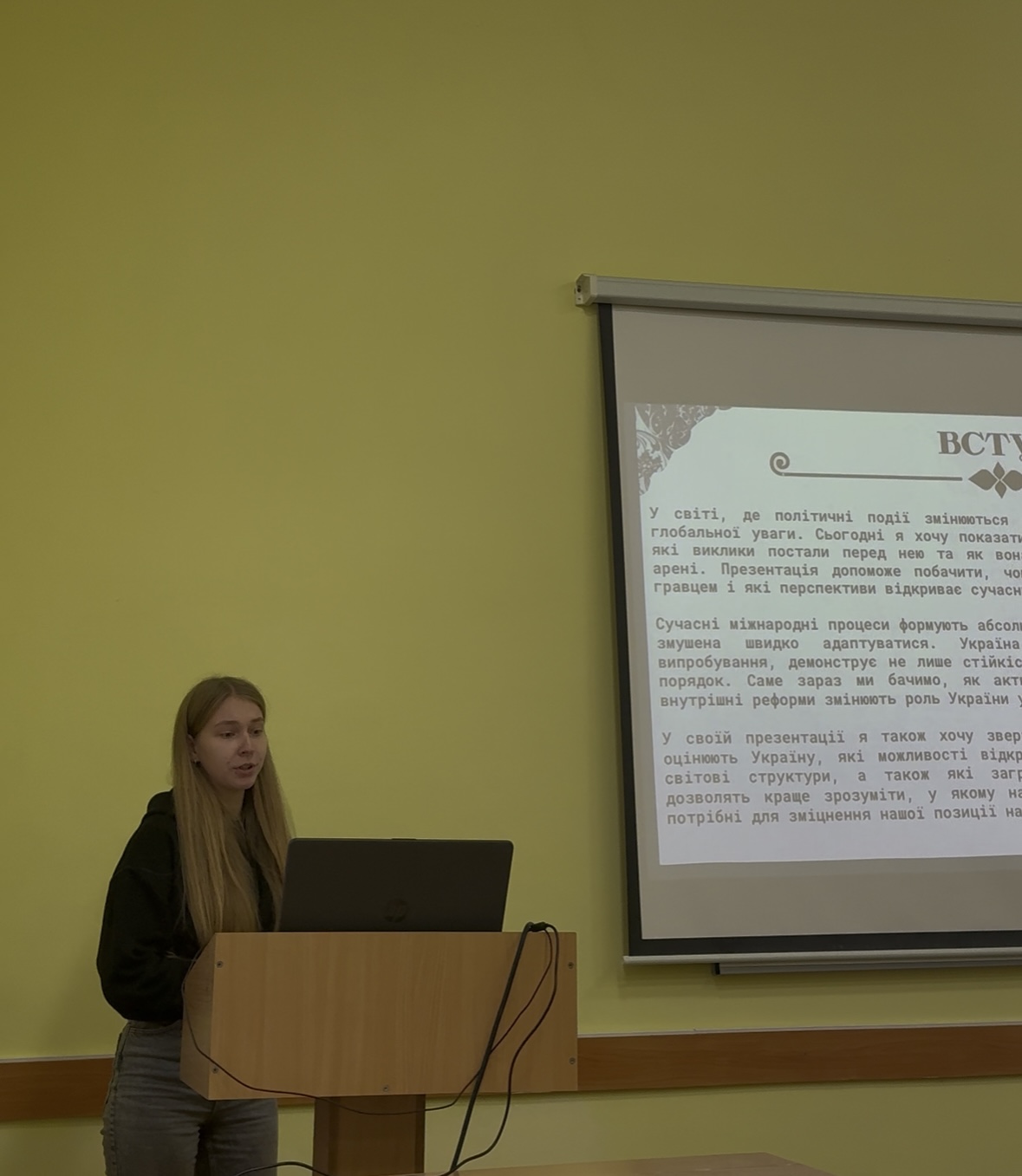 У подальшій роботі конференції було представлено одинадцять презентацій на різну проблематику. Так, Софія Баранюк виступила із презентацією «Україна і Канада: здобутки і перспективи співробітництва»; Роман Куценяк – «Участь української діаспори в США у процесі підтримки України після повномасштабного вторгнення»; Лілія Леневич – «Захист українських громадян за кордоном: нормативно-правова база»; Ярина Стефанишин – «Президентський діалог Україна-Чехія в контексті оцінки стану подій після повномасштабного вторгнення»; Наталія Мотика – «Країни-члени ЄС: діалог у контексті здобуття Україною членства в Євросоюзі»; Марія Ропніцька – «Роль Польщі у всебічній підтримці України на сучасному етапі»; Христина Савко – «Україна-Чехія: особливості різновекторної співпраці у сьогоденні»; Софія Кандур – «Україна як суб’єкт міжнародних відносин: виклики на сучасному етапі»; Христина Демків – «Роль ЮНЕСКО у гарантуванні збереження української культурної ідентичності на сучасному етапі»; Ростислав Григорський – «Безпекове співробітництво України з НАТО після повномасштабного вторгнення»; Ярослав Шарига – «Етапи зростання напруги в російсько-українському діалозі та шляхи вирішення».