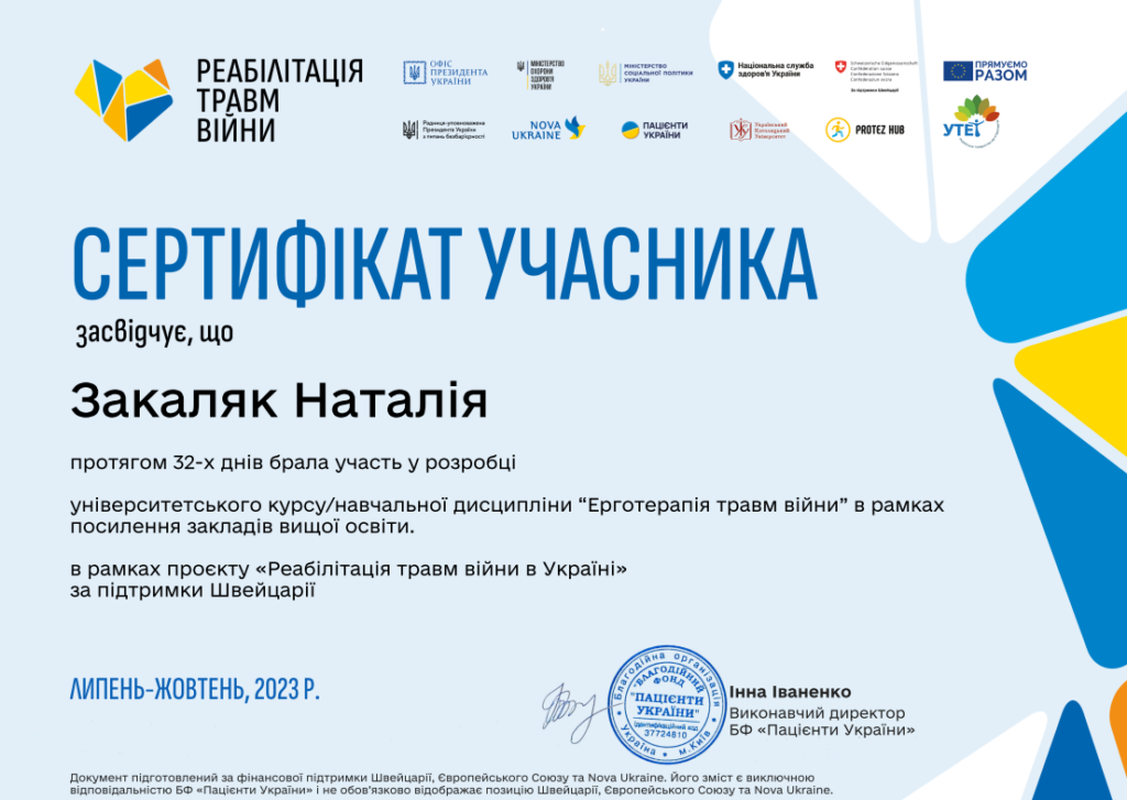 У межах реалізації проекту благодійний фонд з жовтня минулого року розпочав постачання університету на безоплатній основі сучасного реабілітаційного та навчального обладнання для кафедри фізичної терапії, ерготерапії та здоров’я.
