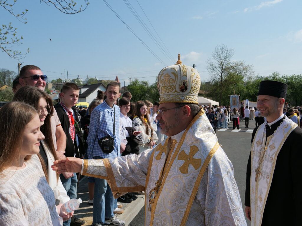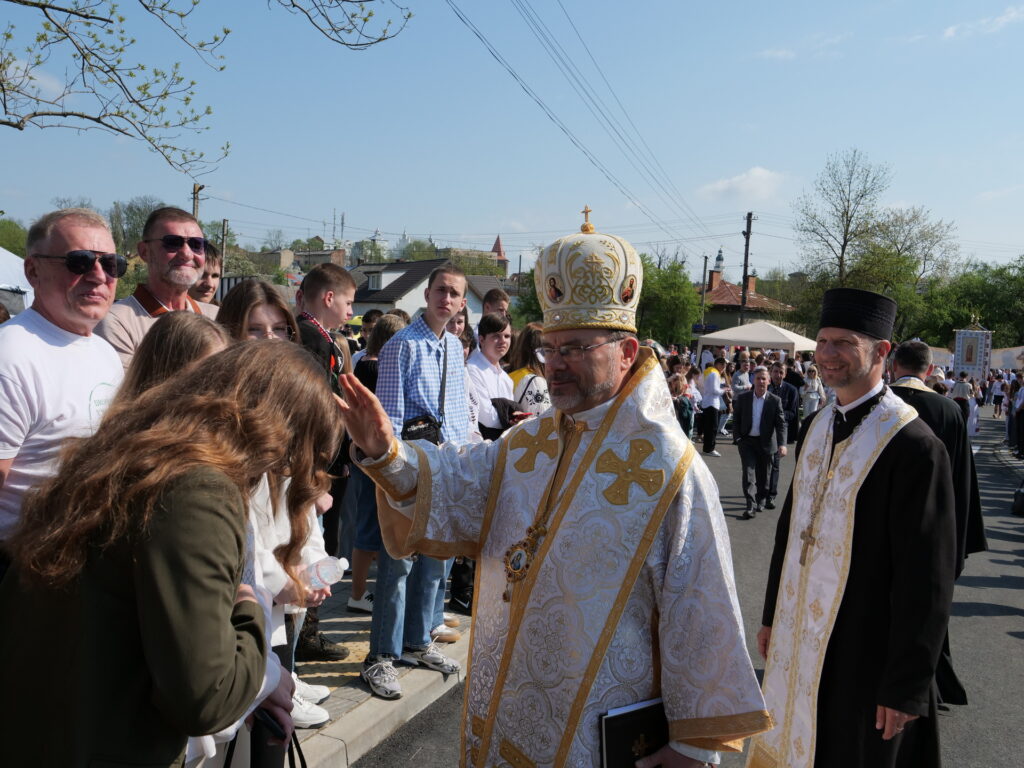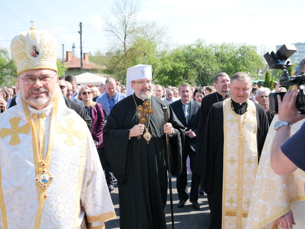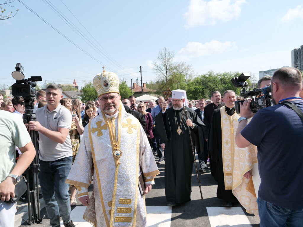 Патріарх УГКЦ Блаженіший Святослав Шевчук звернувся з теплими словами подяки до всіх, хто долучився до оновлення дрогобицького храму — реставраторів, майстрів, науковців, представників влади та благодійників. Наприкінці Літургії Глава УГКЦ освятив ікони святого великомученика Юрія Переможця для наших захисиків. Святий Юрій є духовним покровителем 15-ї окремої бригади артилерійської розвідки «Чорний ліс».