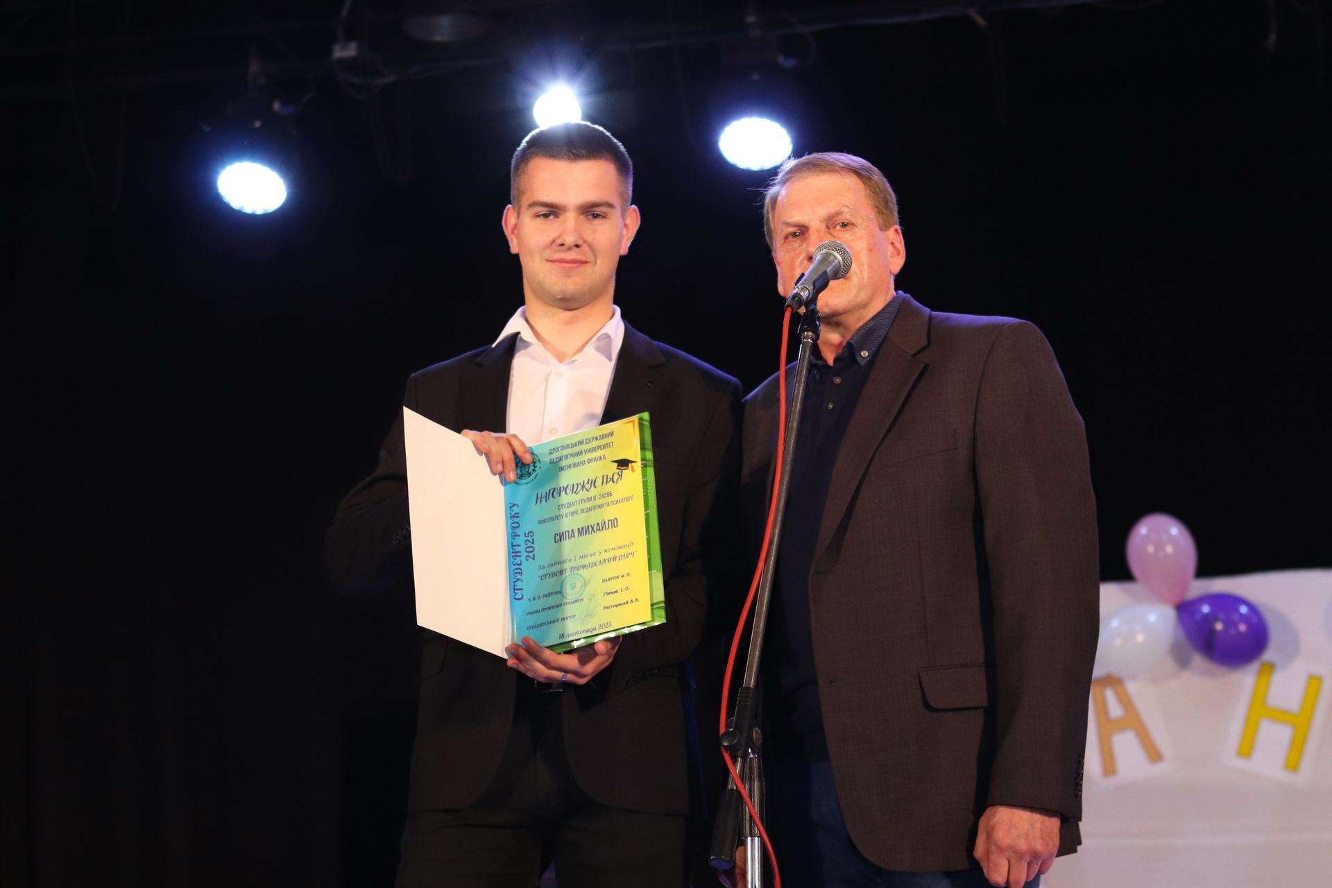 Номінація «Студент –громадський діяч»: III місце – Сирватка Вікторія (ф-т української та іноземної філології); IIІ місце – Комарницька Софія (ф-т української та іноземної філології); ІI місце – Ростоцький Василь (ф-т історії, педагогіки та психології); I місце – Сипа Михайло (ф-т історії, педагогіки та психології). Призерів цієї номінації нагородив голова профкому студентів Ігор Гівчак.