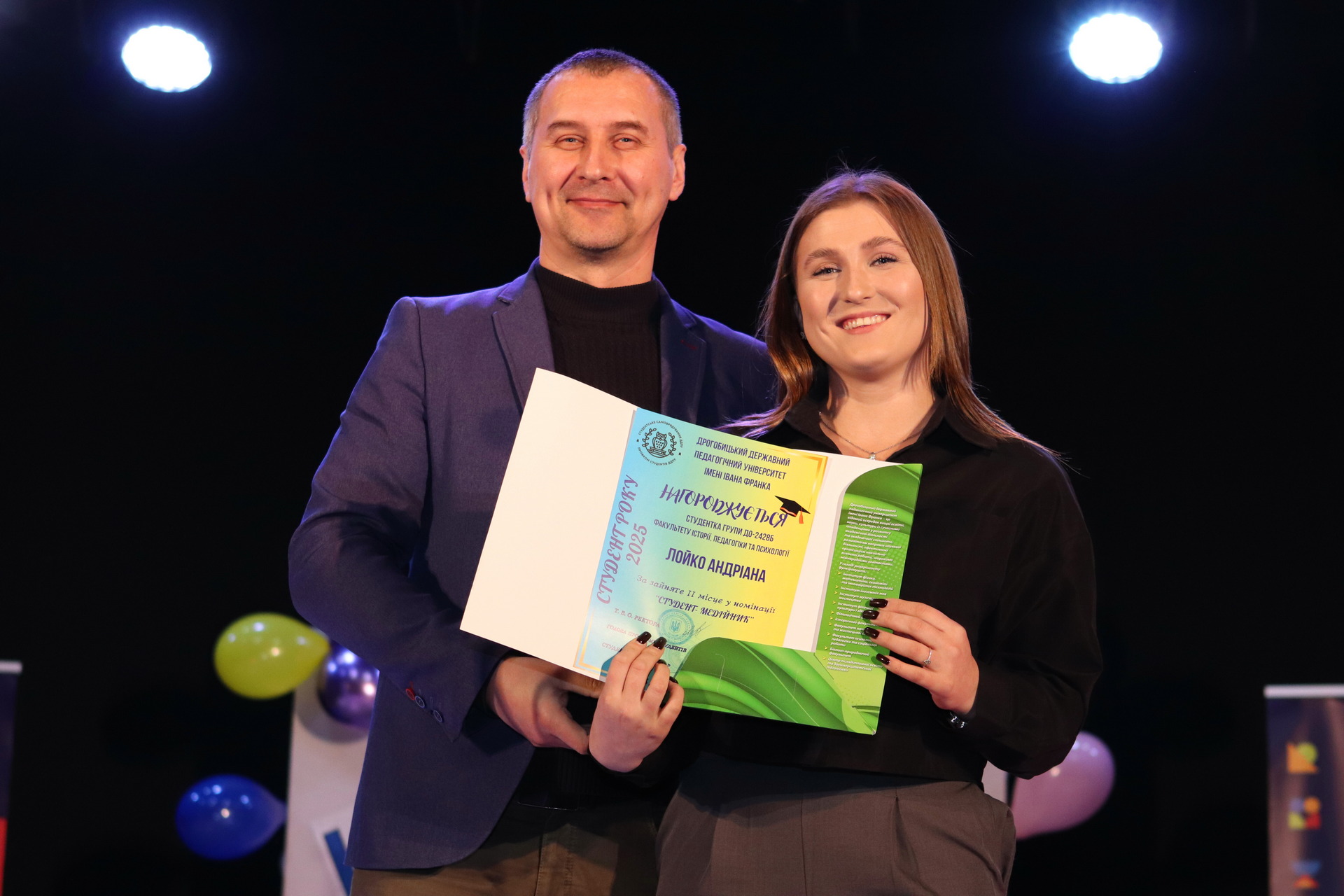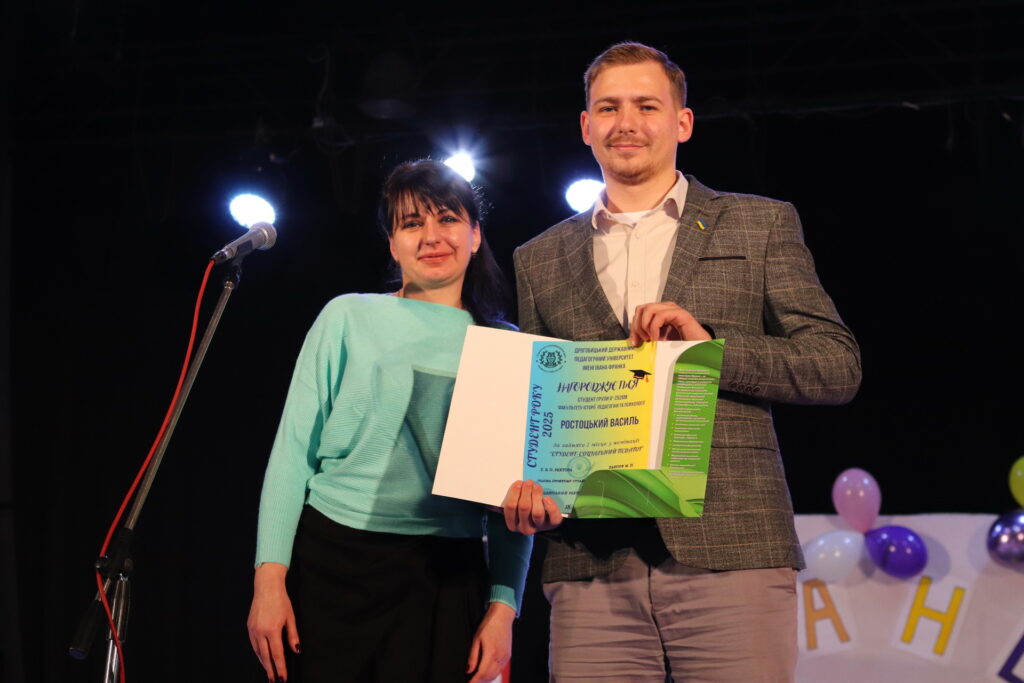 Номінація «Студент – соціальний педагог»: III місце – Яремко Анна (ф-т української та іноземної філології); II місце – Строк Вікторія (ф-т історії, педагогіки та психології); I місце – Ростоцький Василь (ф-т історії, педагогіки та психології). Дипломи переможцям вручала доцентка кафедри соціальної педагогіки та корекційної освіти Мар’яна Клим.