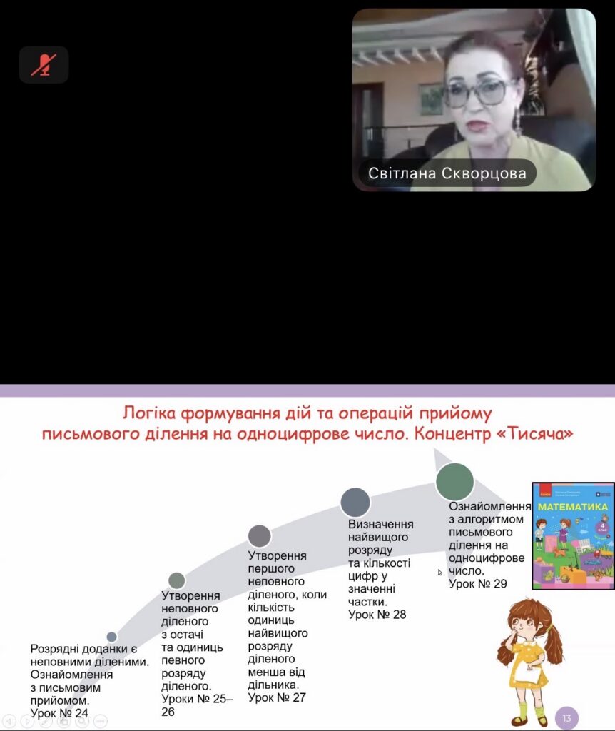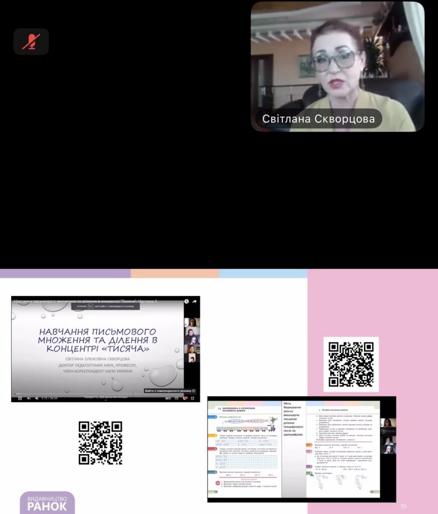 Під час вебінару на тему «Крокуємо з НУШ: формування ключових компетентностей та наскрізних умінь учнів у навчанні математики за НМК Світлани Скворцової та Оксани Онопрієнко» учасники дізналися про сучасні підходи до навчання математики в початковій школі, особливості реалізації ключових компетентностей та наскрізних умінь у межах Нової української школи, а також побачили, як ефективно застосовувати навчально-методичні комплекси Світлани Скворцової та Оксани Онопрієнко на практиці.