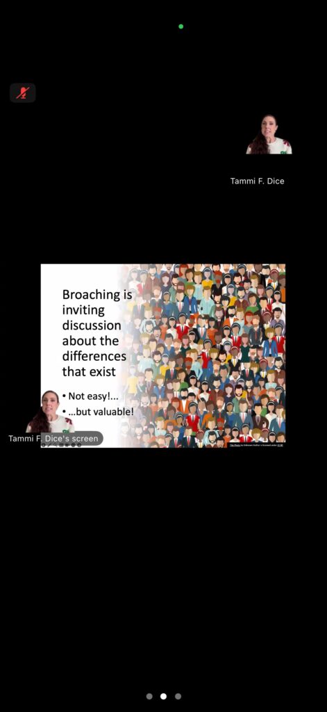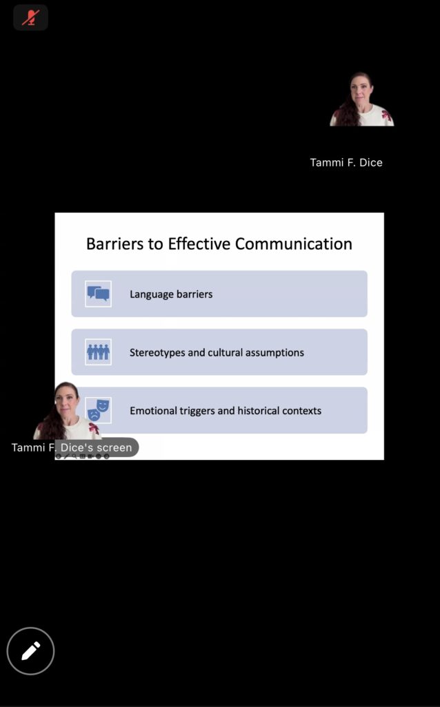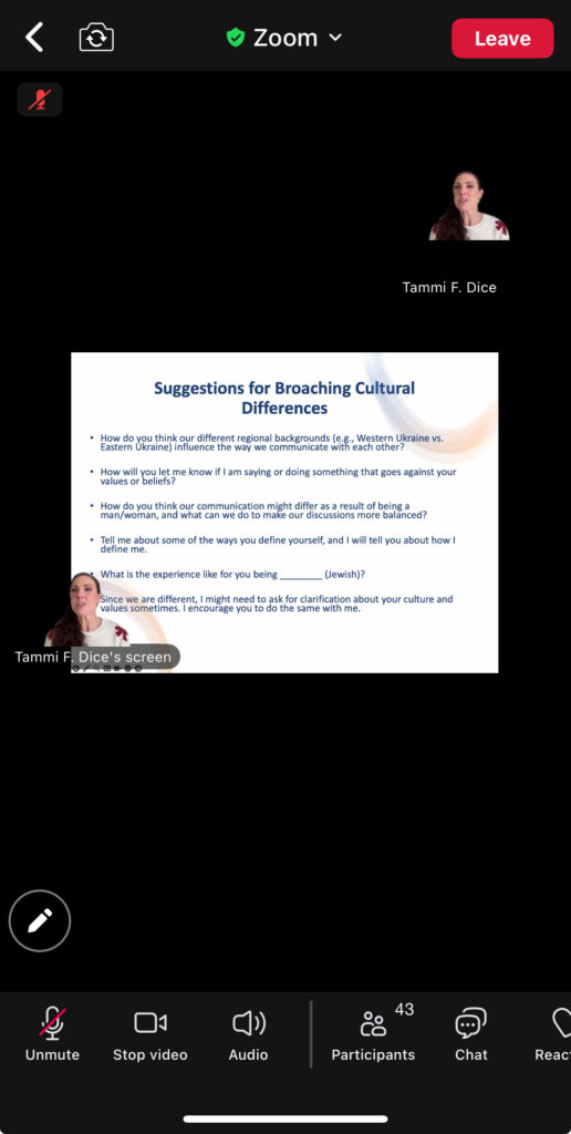Таммі Дайс поділилася техніками подолання мовних барʼєрів, стереотипів, емоційних тригерів, методами розв’язання проблем інтерсекційності та системного гноблення. Здобувачі вищої освіти отримали практичні поради для ефективної міжкультурної комунікації: