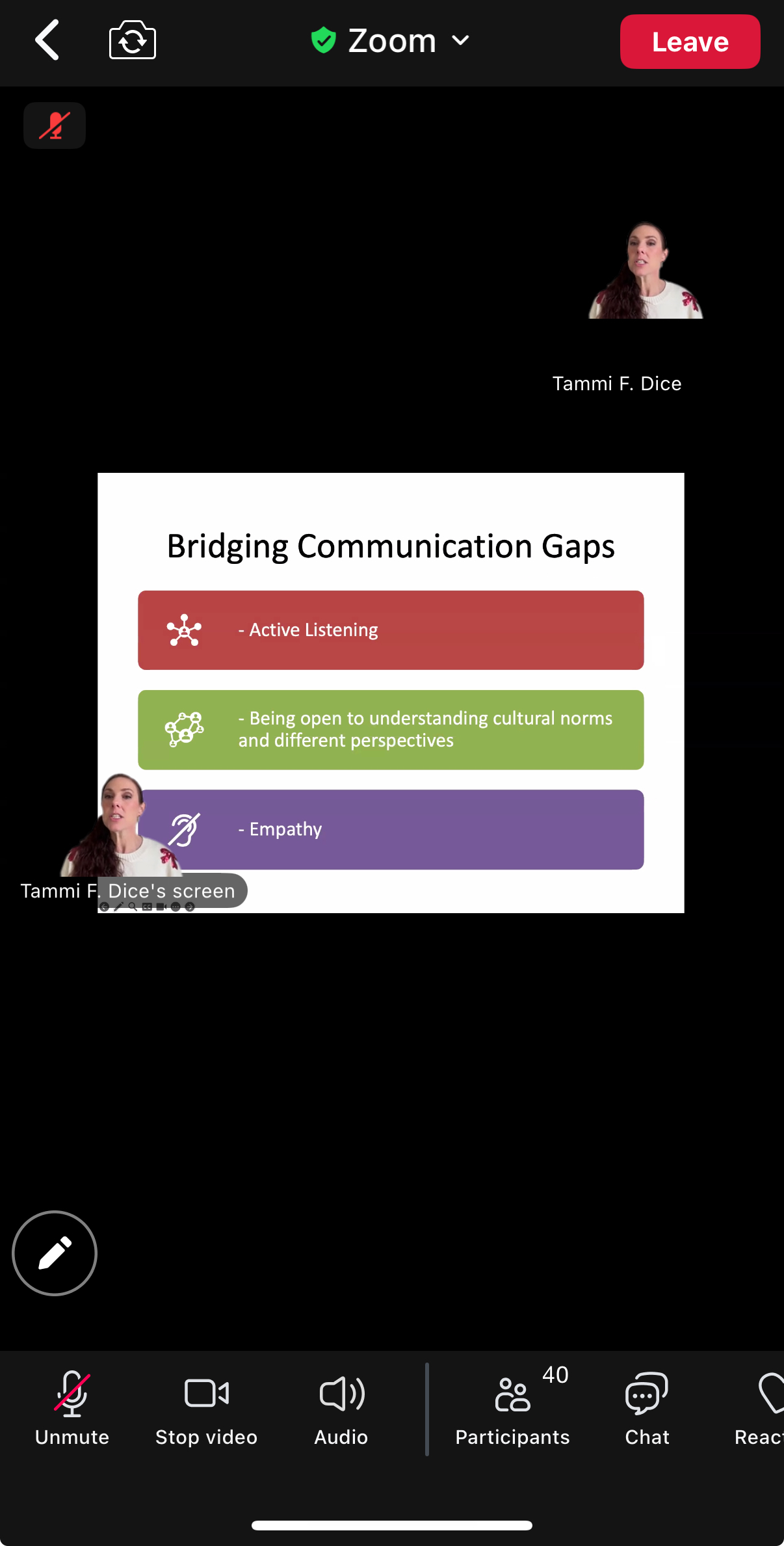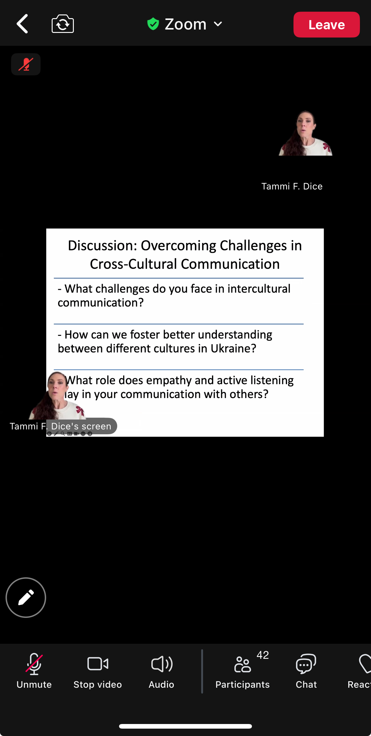 Таммі Дайс поділилася техніками подолання мовних барʼєрів, стереотипів, емоційних тригерів, методами розв’язання проблем інтерсекційності та системного гноблення. Здобувачі вищої освіти отримали практичні поради для ефективної міжкультурної комунікації: