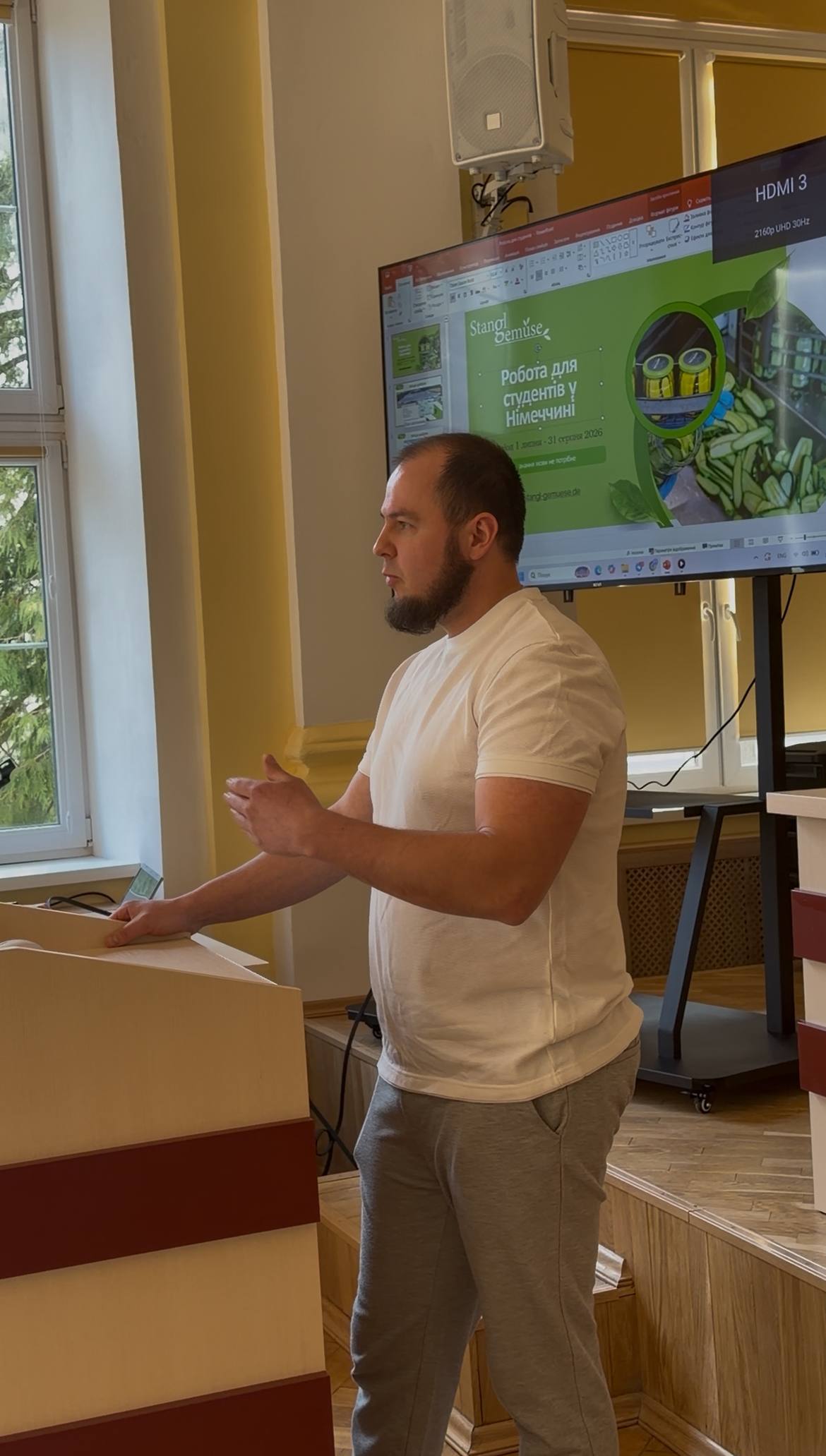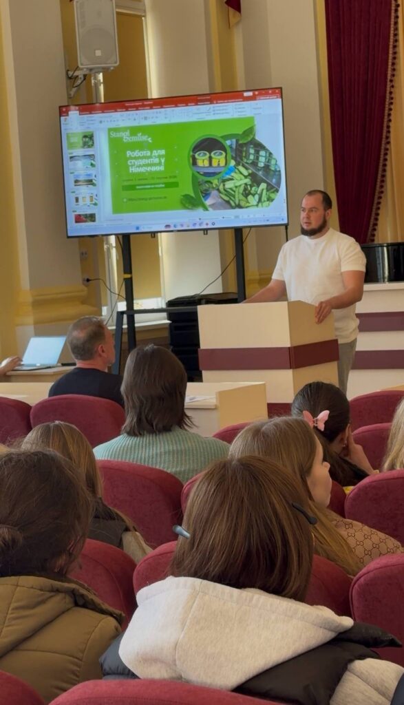 Про можливість працевлаштуватися у літній період за кордоном, зокрема у Німеччині, розповів представник заводу Stangl GmbH & Co. Gemüse KG Андрій Василів. Також прозвучала інформація від компанії «World Gates про різноманітні вакансії для студентів у Німеччині та інших країнах.