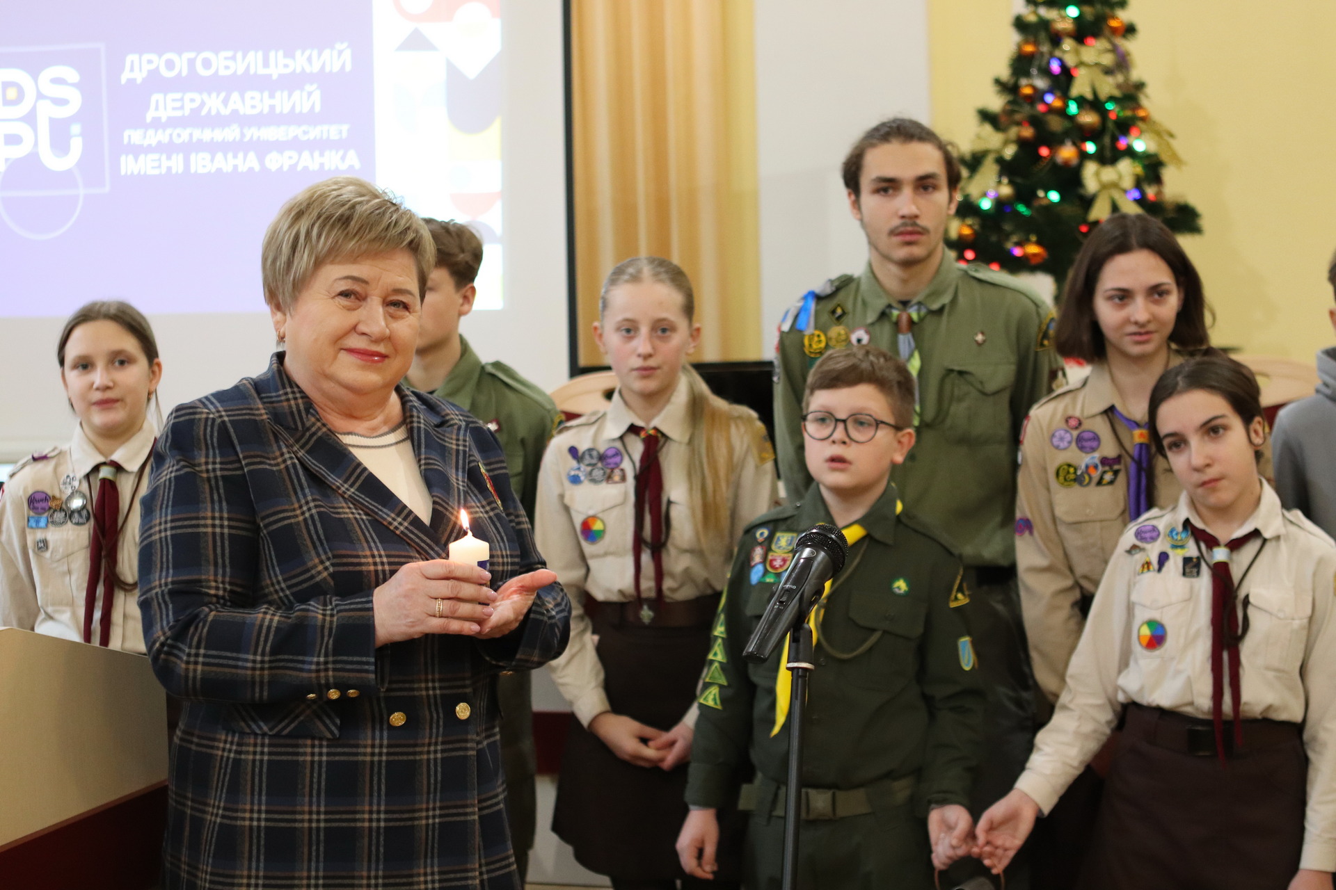 Напередодні Різдва на засідання вченої ради з колядою та щирим словом привітання завітали діти-пластуни, які передали Благодатний вогонь — символ миру, надії та Божої благодаті. До різдвяних віншувань долучилися викладачі факультету початкової освіти та мистецтва, створивши піднесену святкову атмосферу й доповнивши зустріч музичними вітаннями.