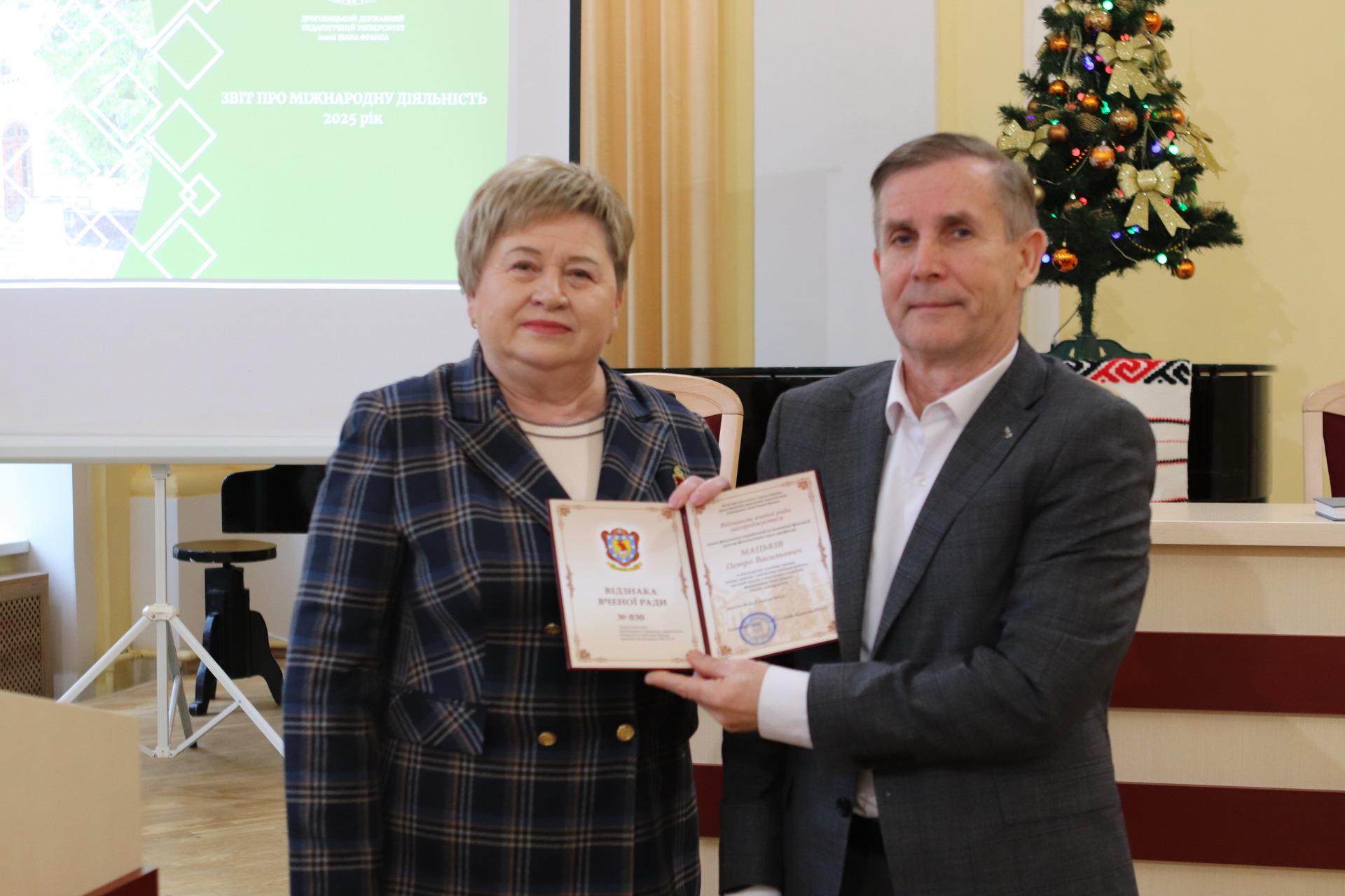 Вчена рада ДДПУ 22 грудня розглянула питання про міжнародну співпрацю університету та завдання на наступний рік, про дотримання академічної доброчесності здобувачами вищої освіти та науково-педагогічними працівниками університету, про використання інформаційно-комунікаційних технологій в освітньому процесі на факультеті української та іноземної філології; затвердила низку положень, зокрема Положення про відкриту науку в Дрогобицькому державному педагогічному університеті імені Івана Франка, Положення про наукового консультанта здобувача ступеня доктора наук і наукового керівника здобувача вищої освіти третього (освітньо-наукового рівня), Положення про наукові школи; внесла зміни до Положення про організацію освітнього процесу в університеті, Положення про організацію та контроль самостійної роботи здобувачів вищої освіти та Положення про порядок визнання у Дрогобицькому державному педагогічному університеті імені Івана Франка результатів навчання, здобутих шляхом неформальної та/або інформальної освіти, затвердивши їх у новій редакції; заслухала звіти керівників науково-дослідних робіт за етапом 2025 року, які виконує ДДПУ імені Івана Франка у 2025 р. за рахунок коштів державного бюджету за кодом програмної класифікації видатків 2201390.