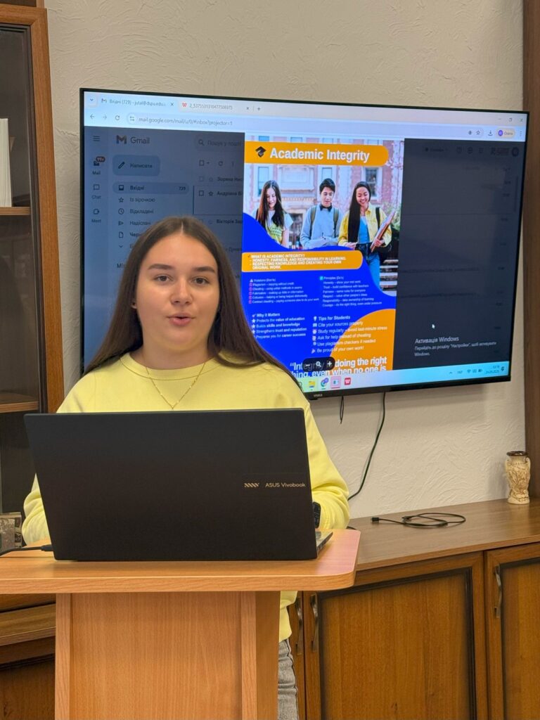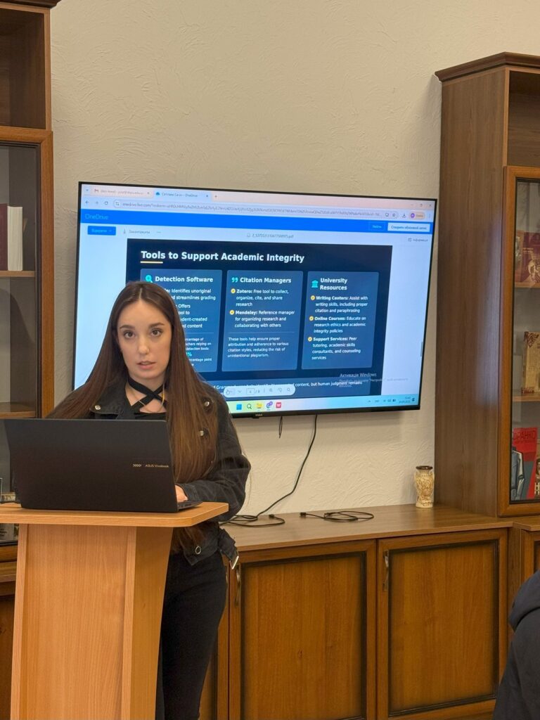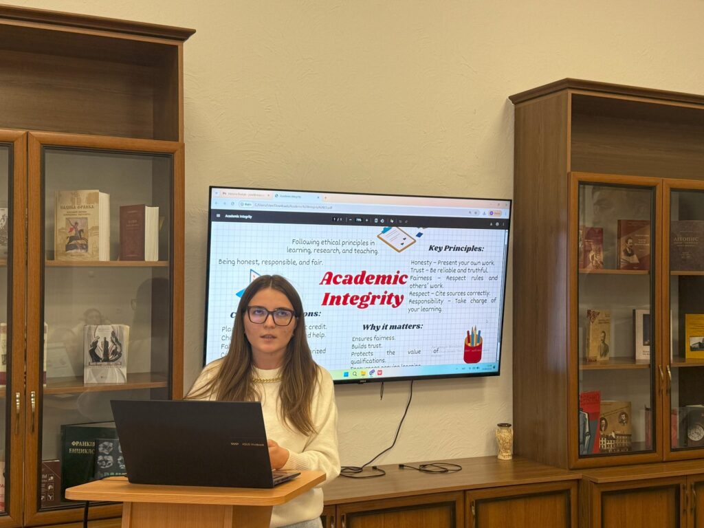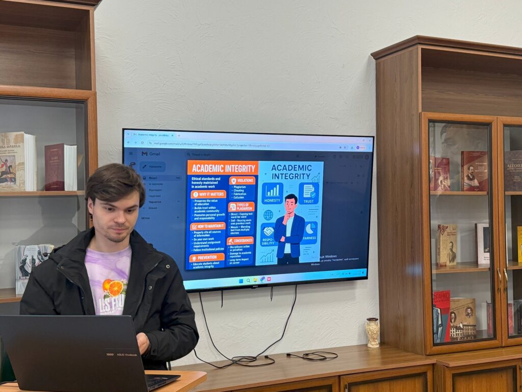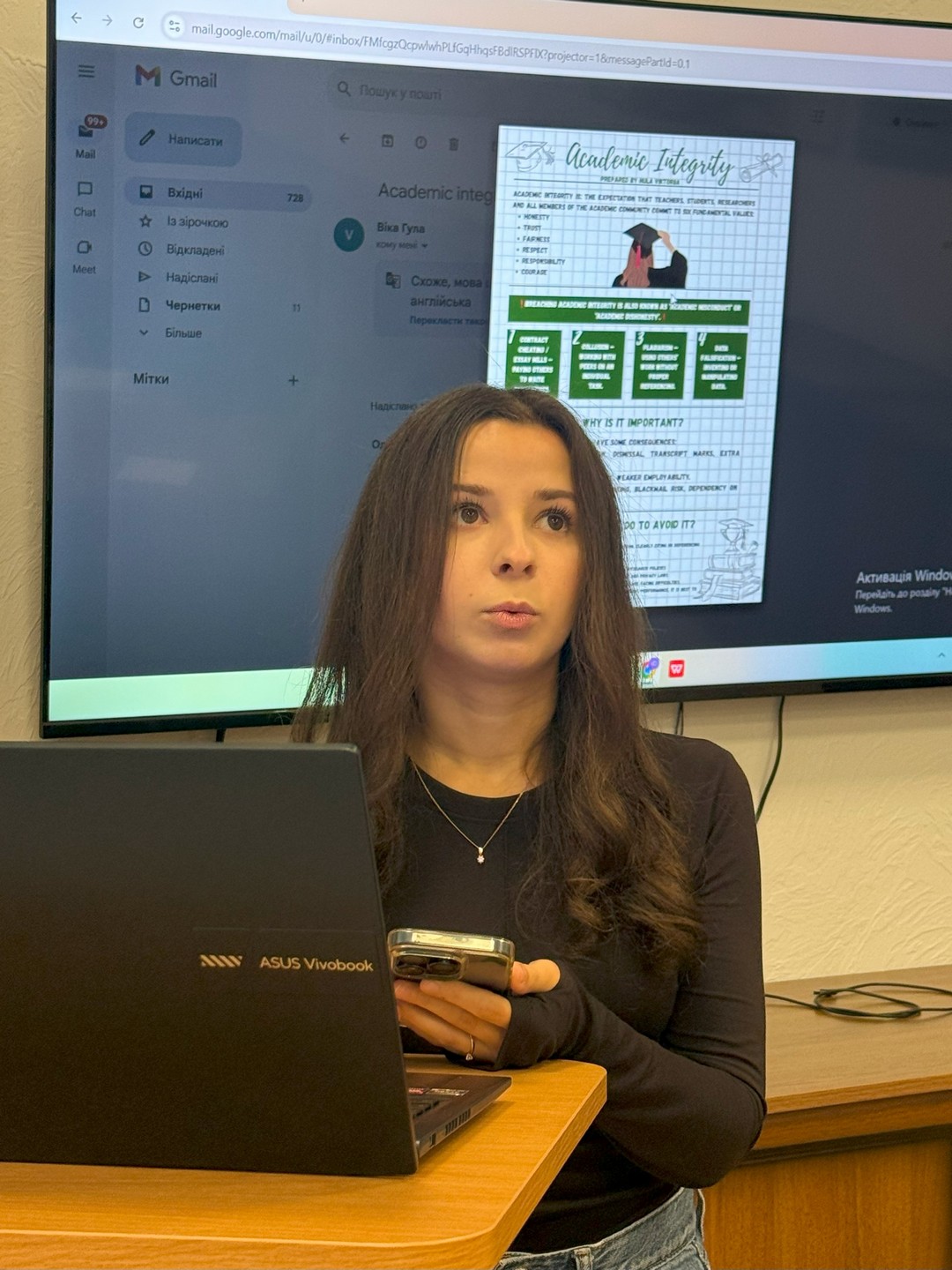 Учасниками заходу стали здобувачі другого (магістерського) рівня вищої освіти групи ПАН-2425М, які представили свої доповіді іноземними мовами. Під час обговорення студенти розглянули перспективи впровадження технологій штучного інтелекту в перекладацькій сфері, а також окреслили потенційні ризики для збереження академічної доброчесності.