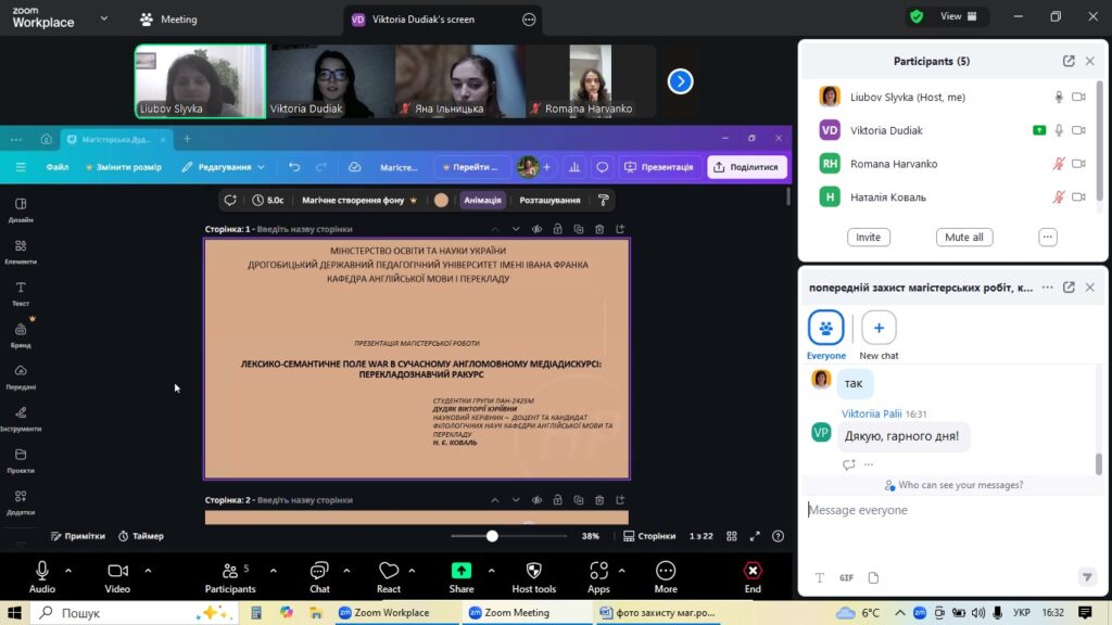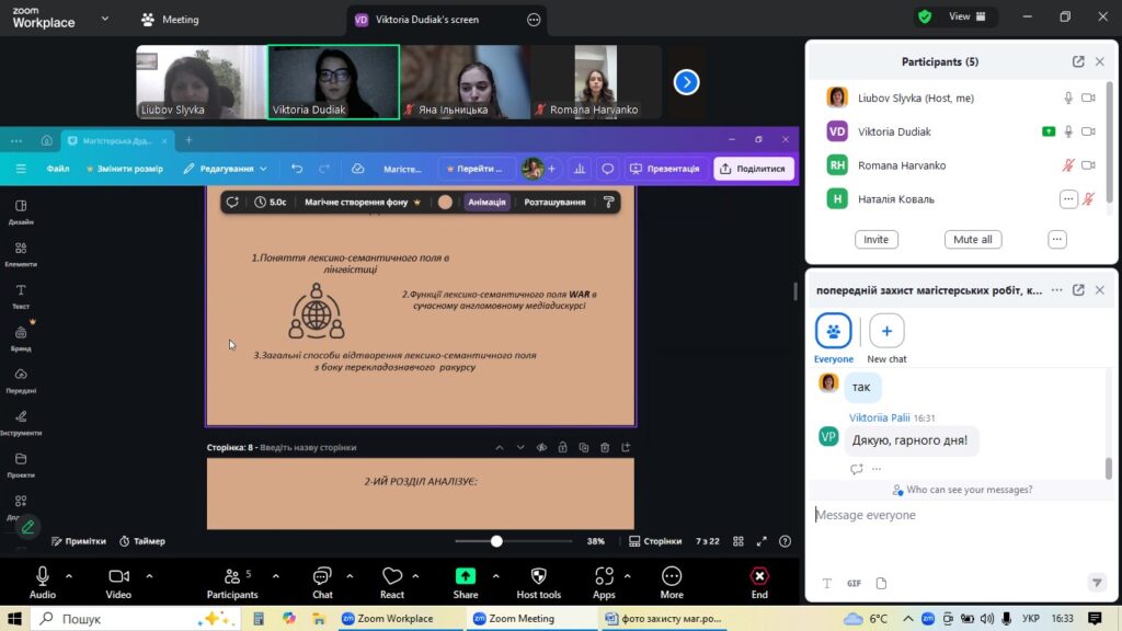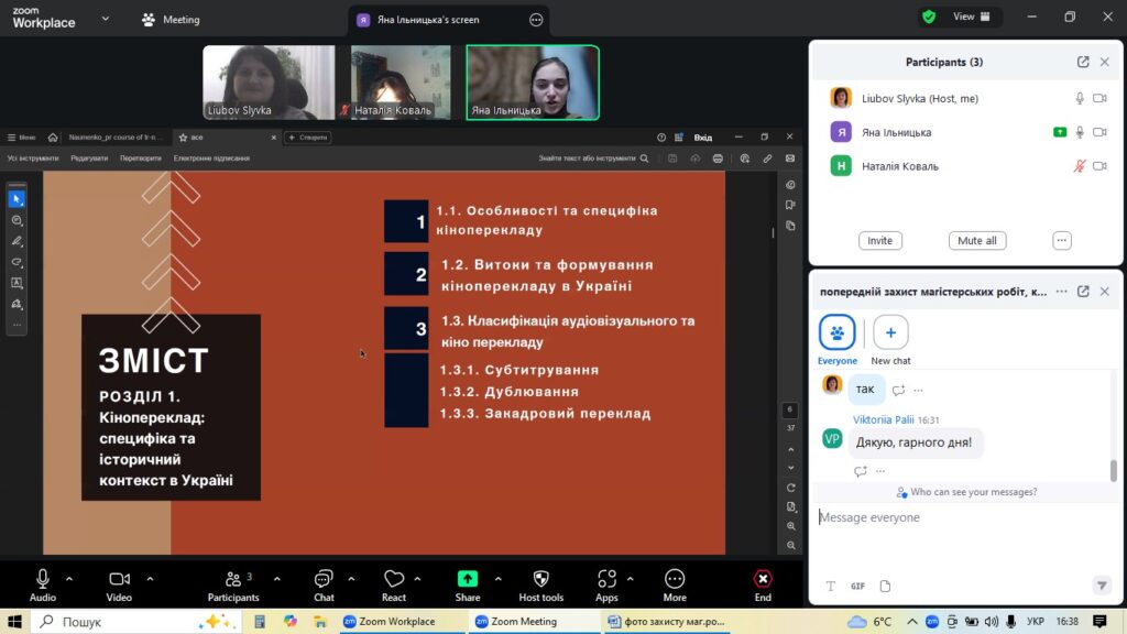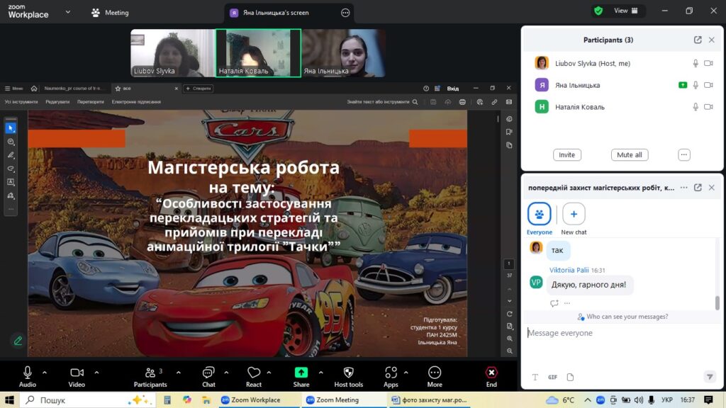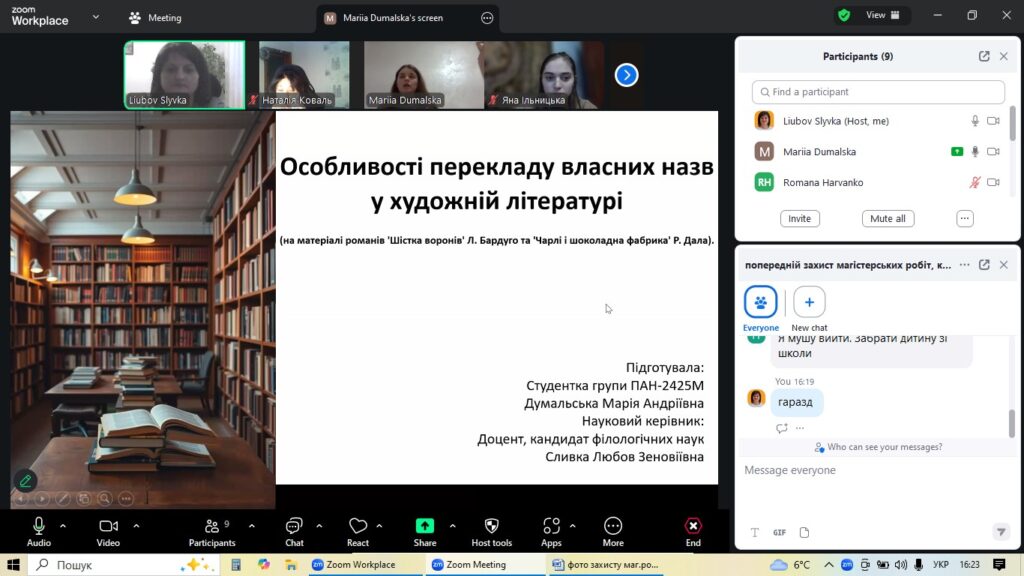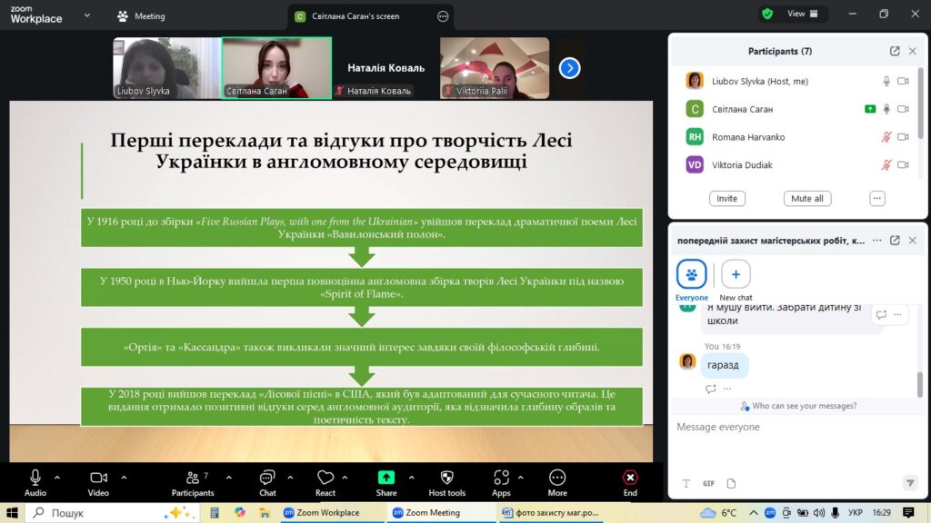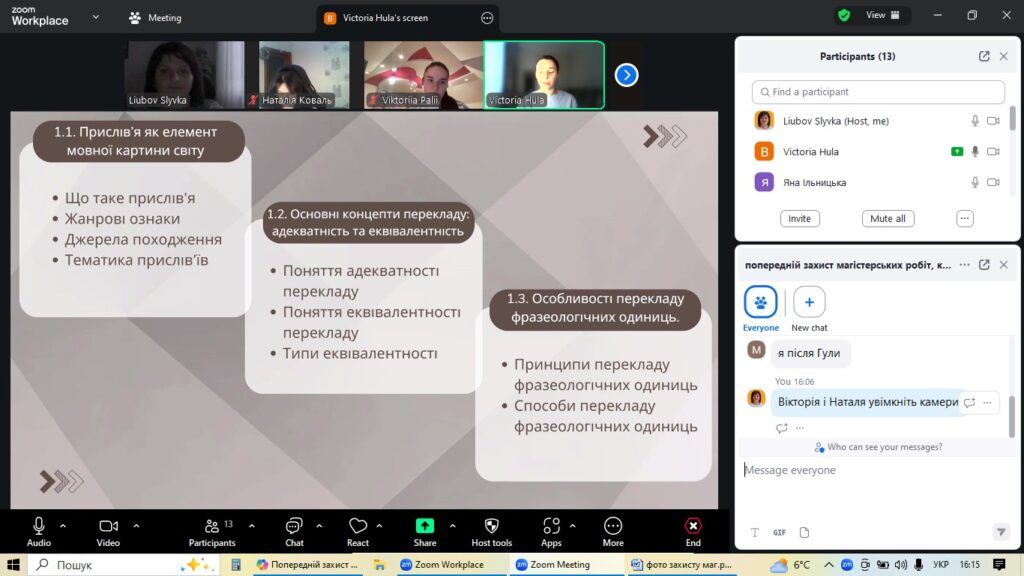 4 грудня на факультеті української та іноземної філології кафедра англійської мови та перекладу організувала попередній захист магістерських робіт студентів-випускників спеціальності «Філологія (Германські мови та літератури (переклад включно), перша – англійська». Цей етап став ключовим для оцінки готовності майбутніх перекладачів до фінального представлення своїх наукових досягнень.