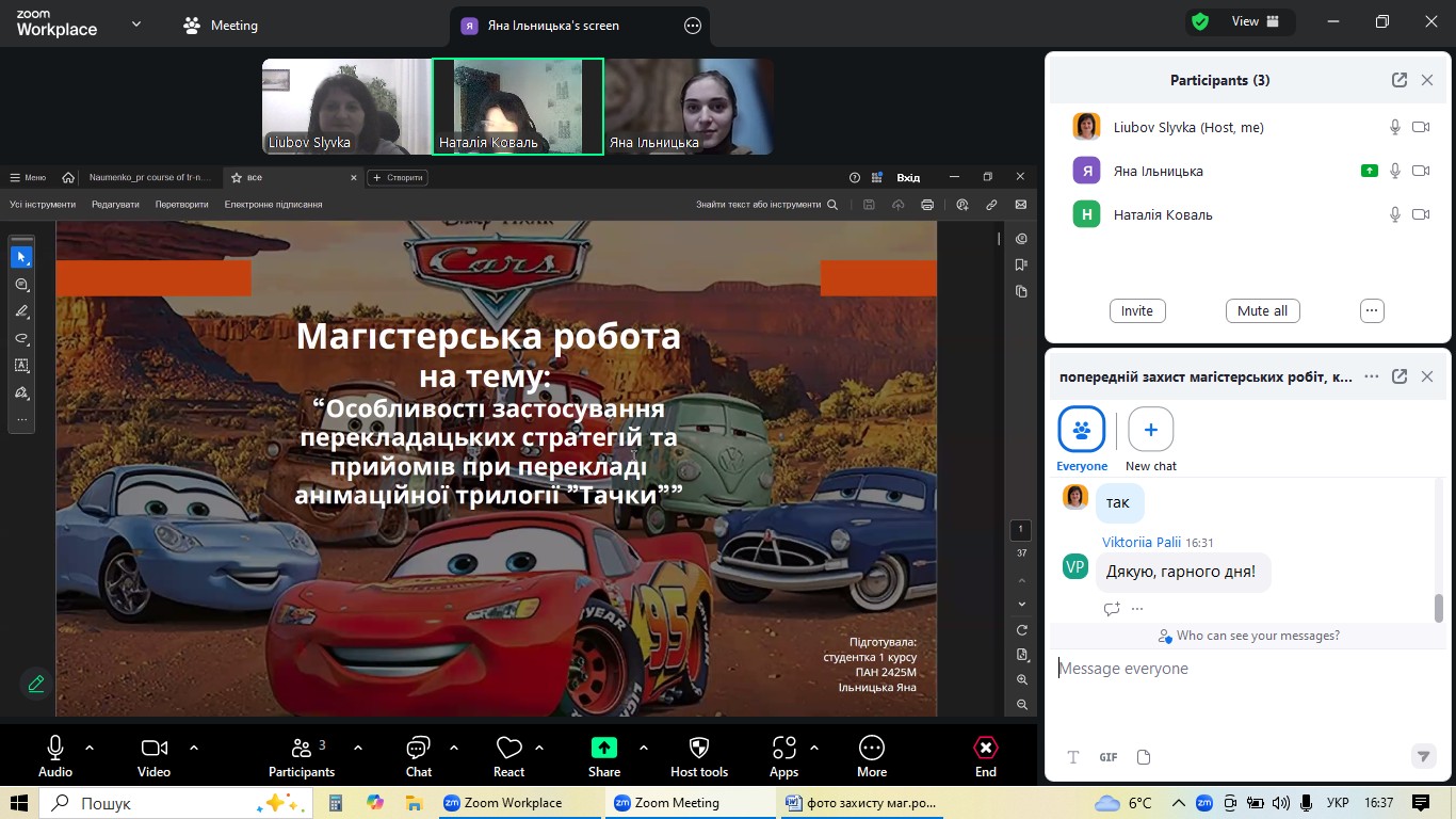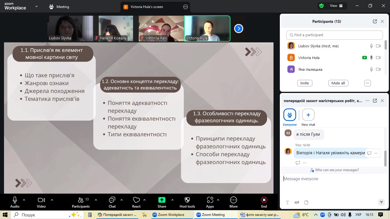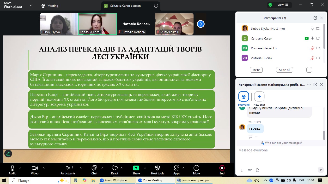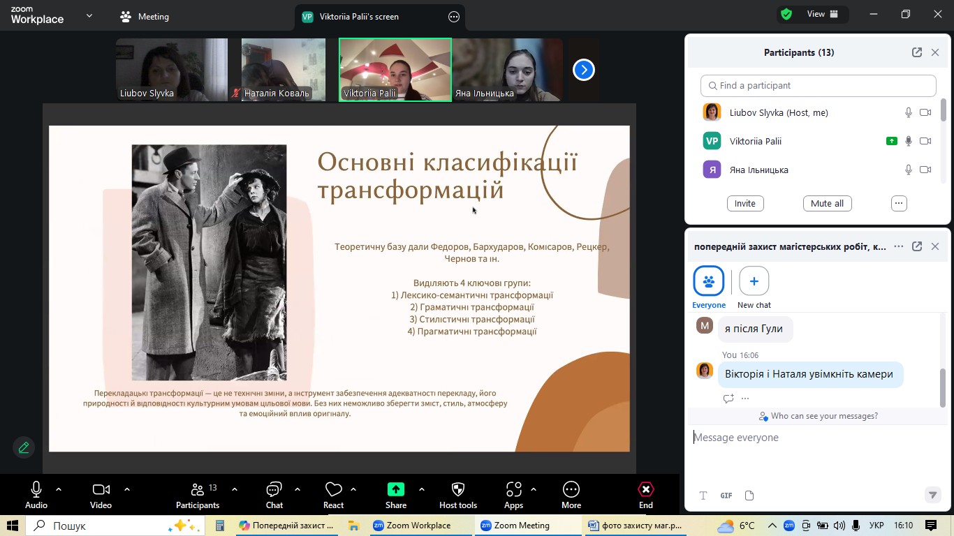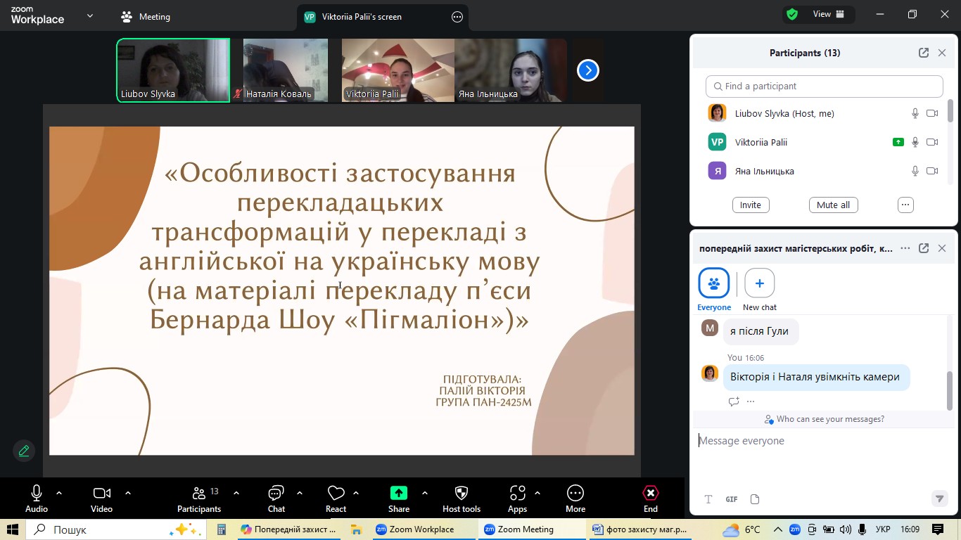 4 грудня на факультеті української та іноземної філології кафедра англійської мови та перекладу організувала попередній захист магістерських робіт студентів-випускників спеціальності «Філологія (Германські мови та літератури (переклад включно), перша – англійська». Цей етап став ключовим для оцінки готовності майбутніх перекладачів до фінального представлення своїх наукових досягнень.