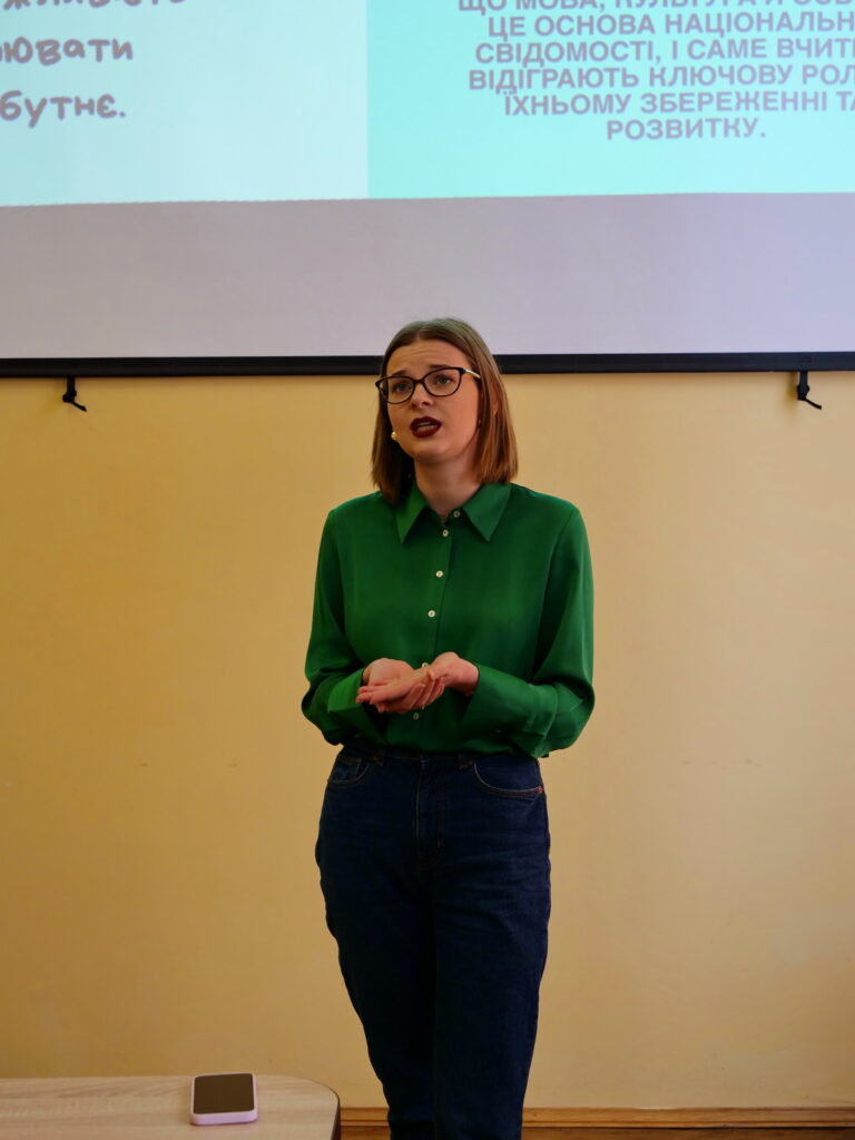 Своїм досвідом праці у школі Галина Чепак також щедро поділилася з присутніми – креативна, творча, безпосередня й емоційна педагогиня справила чудове враження на студентів й викладачів факультету.