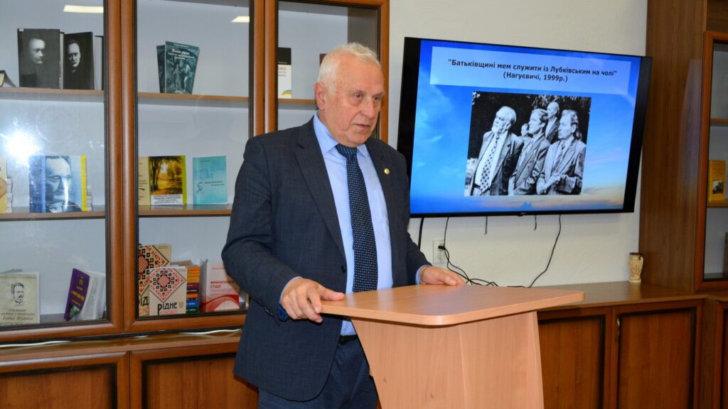 Про діяльність товариства «Україна-Світ» розповів голова його львівського відділення, доктор філологічних наук, голова Міжнародної асоціації франкознавців, професор Михайло Гнатюк.