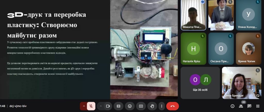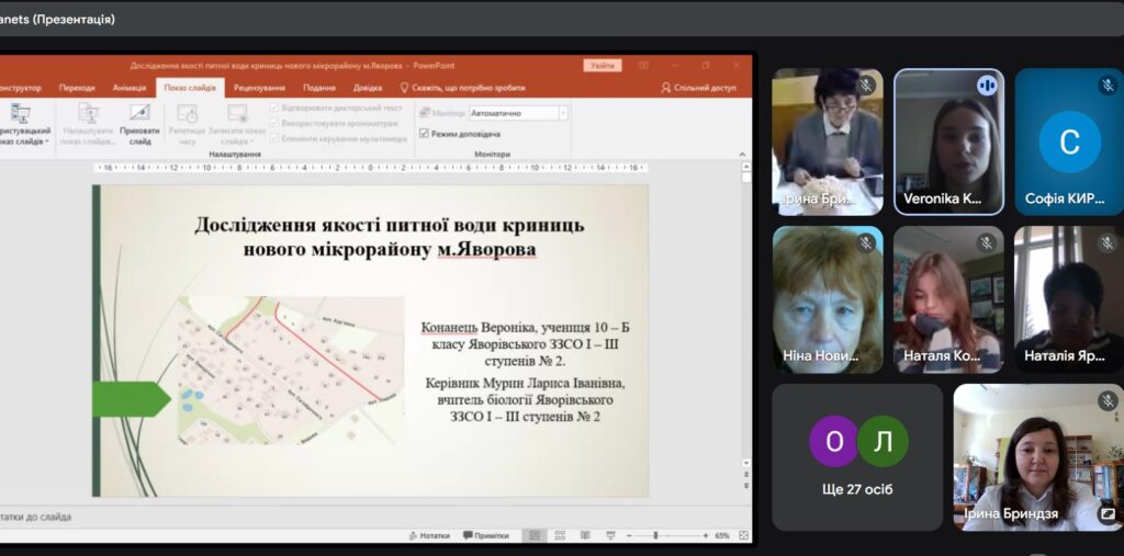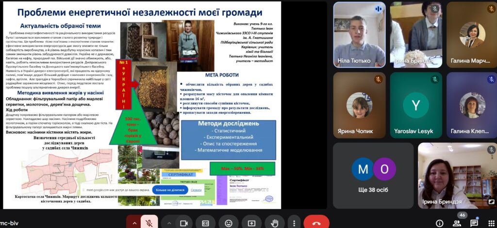 Змістовними та обгрунтованими були представлені наукові роботи учнів на пленарному засіданні: «Визначення вмісту CO2 з використанням STEM лабораторії» (Остап ЧУПІЛЬ – Ралівський ОЗЗСО імені Івана Франка; «Втрата лісового покриву в Хустському районі Закарпатської області (Ярина ЧОПИК – Дрогобицький науковий ліцей імені Богдана Лепкого); Проблеми енергетичної незалежності моєї громади (Іван ТЮТЬКО – Чижиківський ЗЗСО І-ІІІ ступенів імені А. Гнатишина Підберізцівської сільської ради Львівського району); Екологічна ситуація Львівщини: сучасний підхід до охорони природи (Христина ВОЛОШЕНЮК – Дрогобицький науковий ліцей імені Богдана Лепкого).