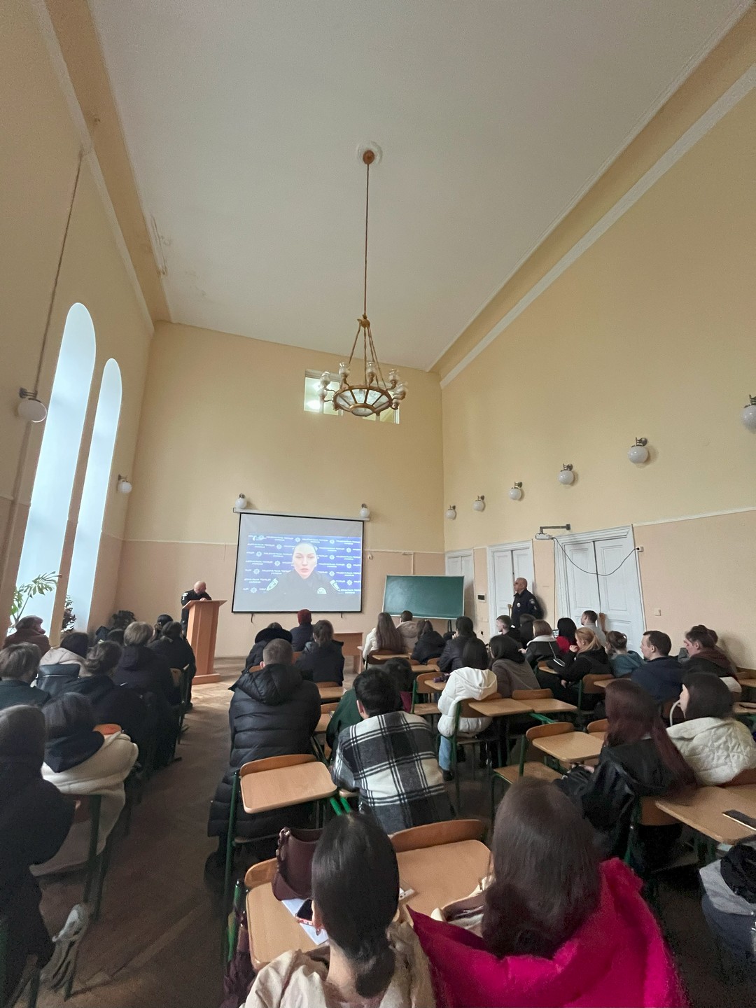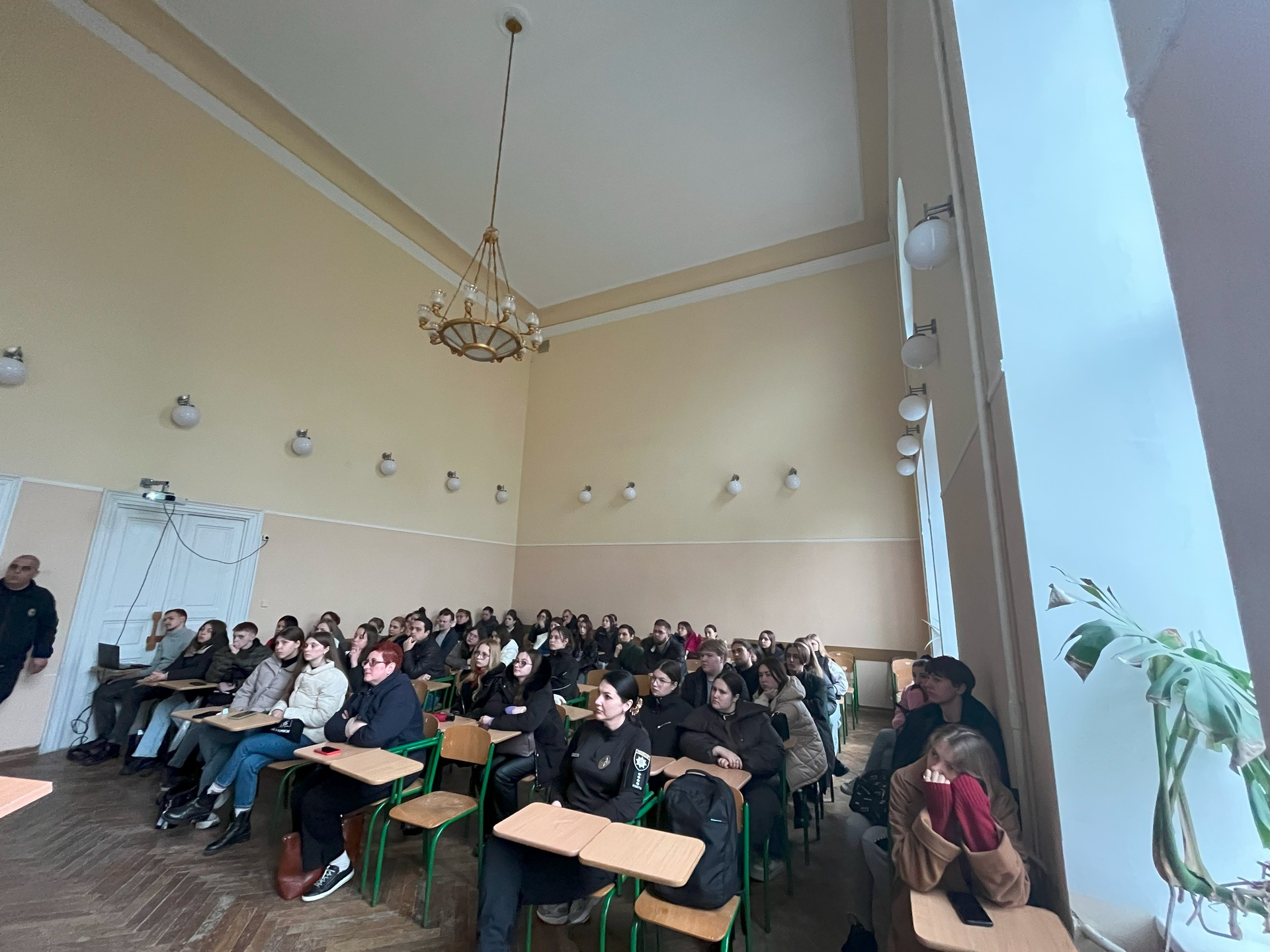 У Дрогобицькому державному педагогічному університеті імені Івана Франка для здобувачів освіти всіх факультетів відбулася серія лекцій, присвячених питанням безпеки в умовах воєнного стану. Правоохоронці розповіли про реальні загрози терористичних атак, інформаційного впливу та вербування молоді ворожими спецслужбами.