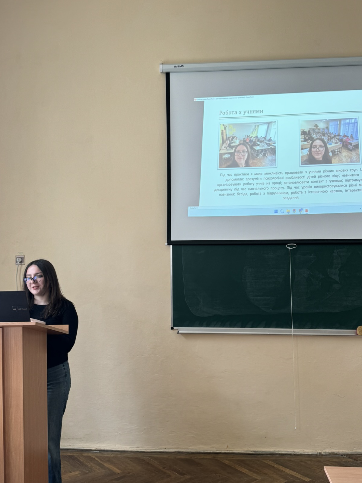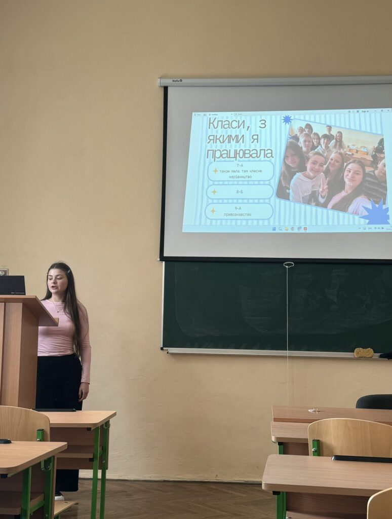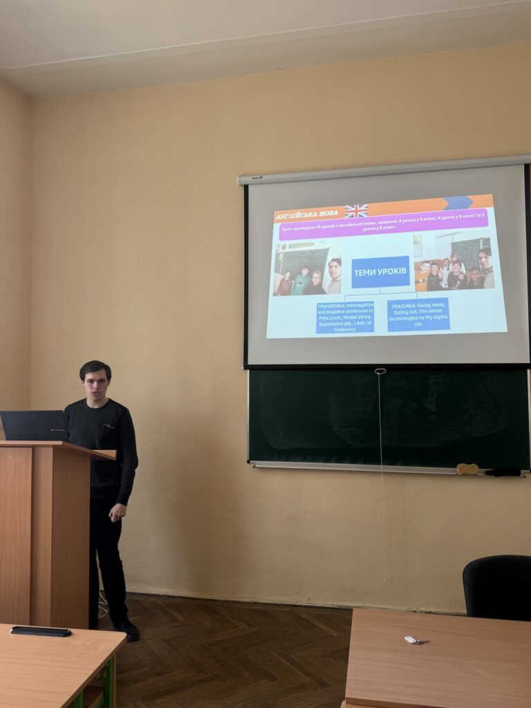 Під час демонстрації звітних мультимедійних презентацій здобувачі вищої освіти відзначили, що на уроках і позакласній роботі застосовували цифрові технології, інтелект-карти, кейс-метод, віртуальні екскурсії, інтерактивні ігри-вікторини, зокрема kahoot.com. Практиканти пропонували для школярів і нестандартні творчі завдання зі створення візуалізації до уроків за допомогою штучного інтелекту.